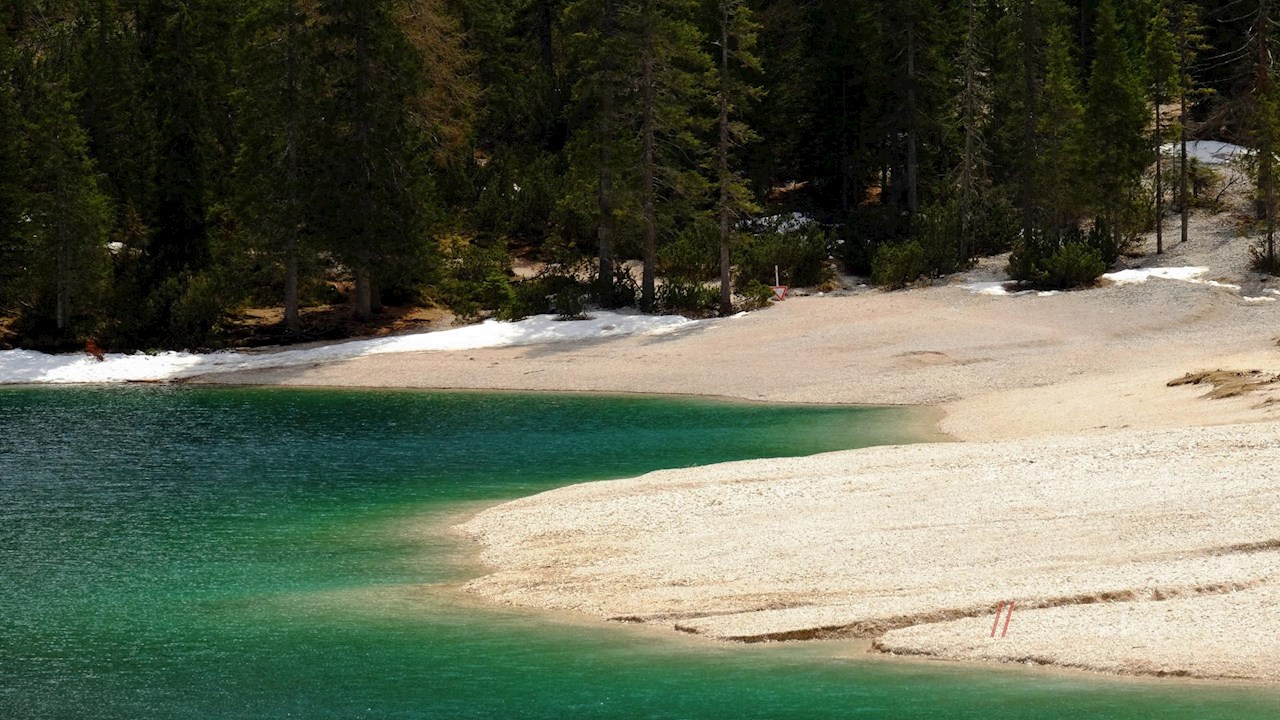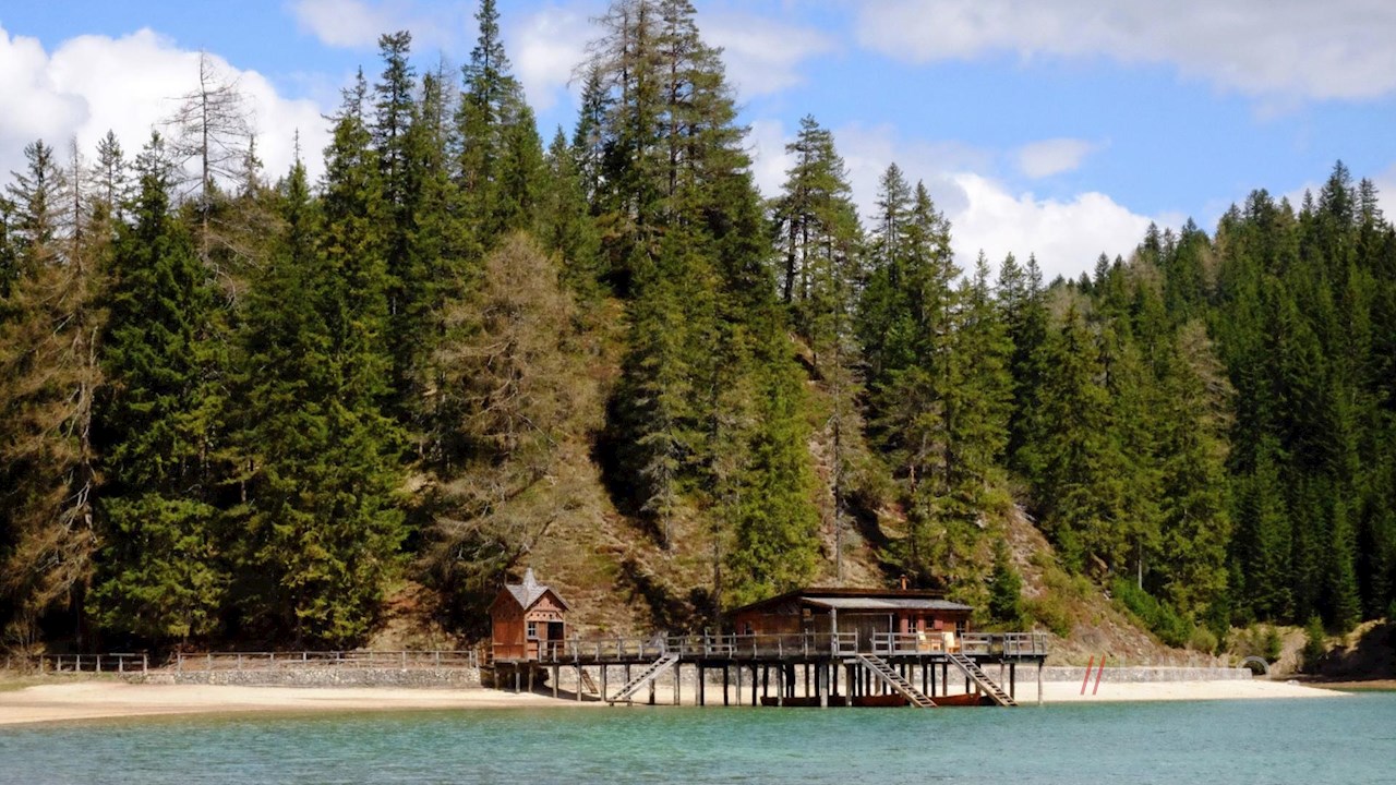 Inmitten der Pragser Dolomiten liegt auf fast 1.500 m Höhe der schimmernde Pragser Wildsee. Dieser in Schlerndolomit gebettete Bergsee wird von hohen Bäumen und mächtigen Felsen umfriedet, die sich im klaren, von Forellen und Saiblingen besiedelten Wasser spiegeln – kein Wunder, dass er Eingang in die lokale Sagenwelt gefunden hat: Ein Tor an seinem Südende soll angeblich in die unterirdischen Gefilde des sagenumwobenen Reiches der Fanes führen...