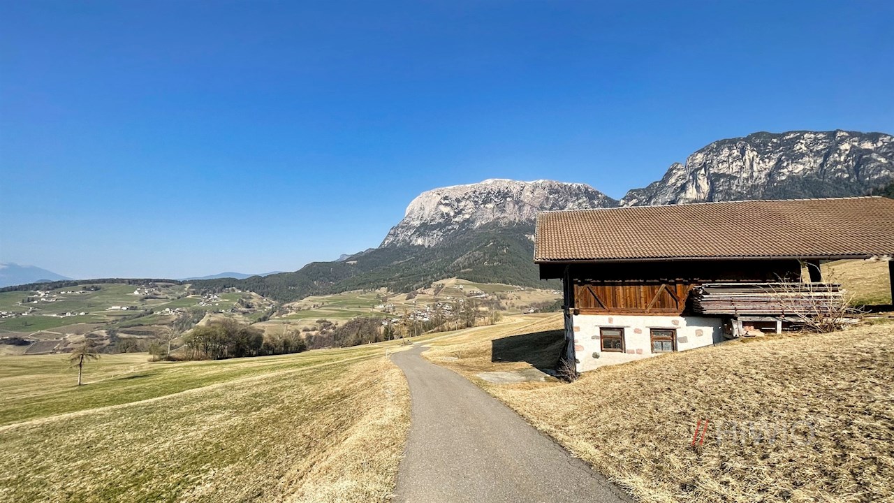 Er schlängelt sich vor der bezaubernden Kulisse des benachbarten Dorfes Völs und der dahinter aufragenden Berge durch leicht gewellte Wiesen zu dieser kreuzgeschmückten Lichtung, einem uralten Übergang von Völs ins Tierser Tal.