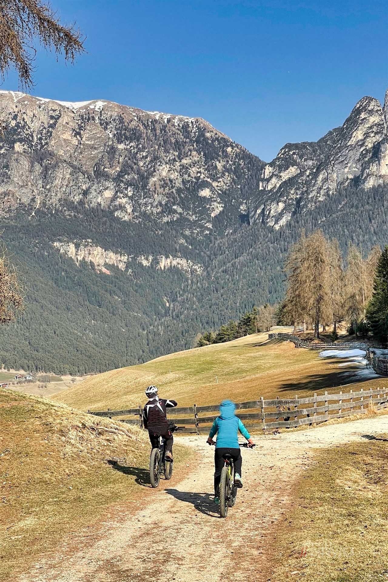 Von Prösels führt der Weg Nr. 3 vor der Kulisse des Schlern und der Hammerwand in circa 40 Minuten sanften Wanderns zum Ausgangspunkt in Ums zurück.