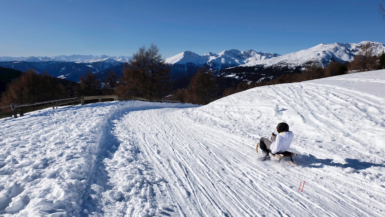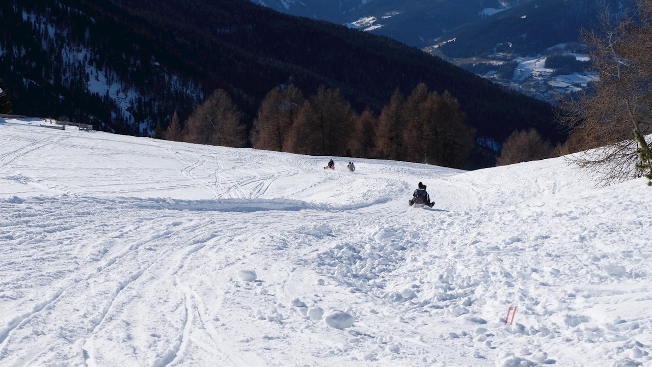 Schließlich mündet der Urlesteig in die Reinswalder Rodelbahn, die an der einladenden Sunnolm vorbei zum Ausgangspunkt hinabführt. Wer die Rodel dabeihat, kann nun in vergnüglichen Schwüngen zu Tale fahren.