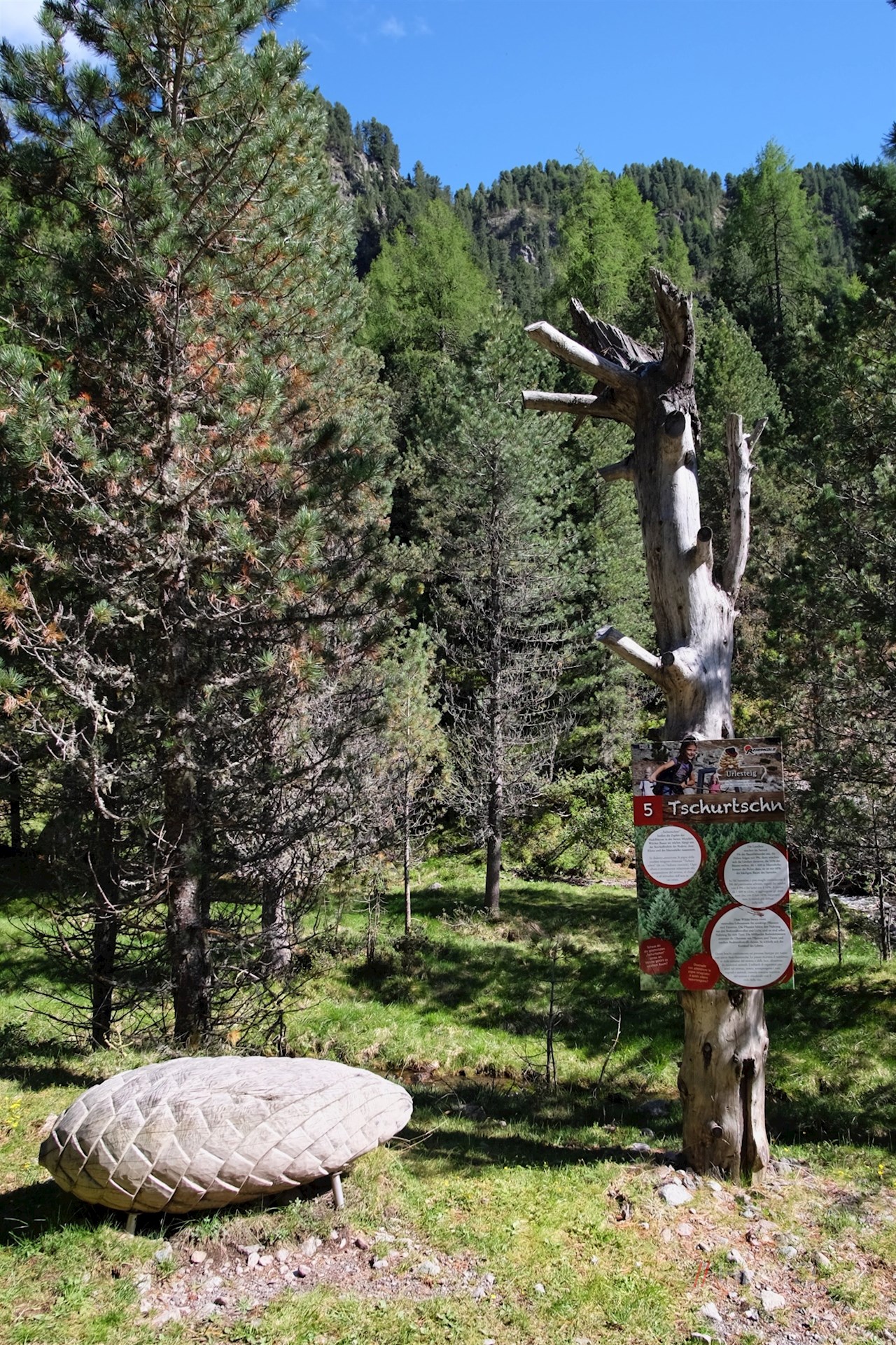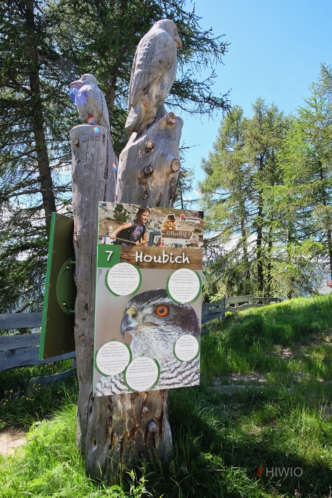 Von der Sunnolm steigt der Weg Nr. 8 (und später 9A) durch weite Almwiesen und zirbenbestandene Heidehänge zur kinderfreundlichen Pfnatschalm an. Längs des Weges gewähren die anregend und kreativ gestalteten Infotafeln des Urlesteigs interessante Einblicke in Südtirols Tierwelt. So erfährt man beispielsweise, wie weit ein Eichhörnchen springen kann oder wie es dem Specht gelingt, Käfer und Nüsse aufzuknacken. Besonderer Beliebtheit erfreut sich eine Riesenlibelle, an der die Kinder ihre Kletterkünste unter Beweis stellen können.