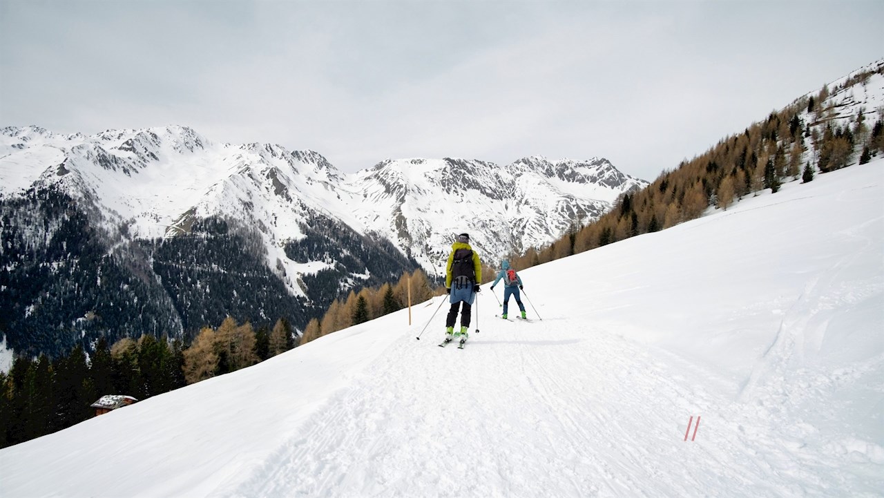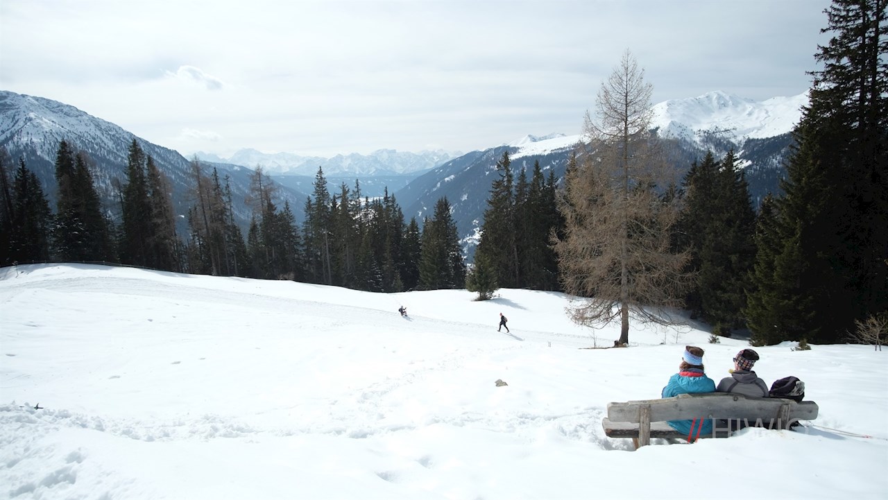 Er führt in angenehmer Steigung durch einen schneebehangenen Nadelwald, der hie und da verträumte Ausblicke ins verschneite Gsieser Tal und auf die umliegende Bergwelt freigibt.