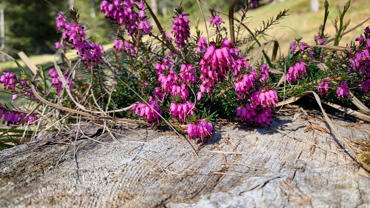 Hinter der Waldgrenze dehnen sich schließlich sattgrüne Almwiesen aus, in denen im Frühsommer eine bezaubernde Vielzahl bunter Almblumen gedeiht. Zu ihnen zählen beispielsweise die Alpenazalee, die Anemone, die Alpenrose oder der tiefblaue Enzian.