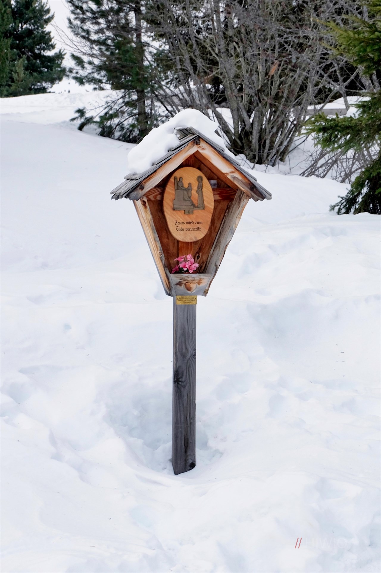 Eine andere lohnende Alternative ist die Winterwanderung zur Stöfflhütte auf dem Weg Nr. 15. Auf beiden kann man mit der Rodel zum Ausgangspunkt hinabgleiten.
