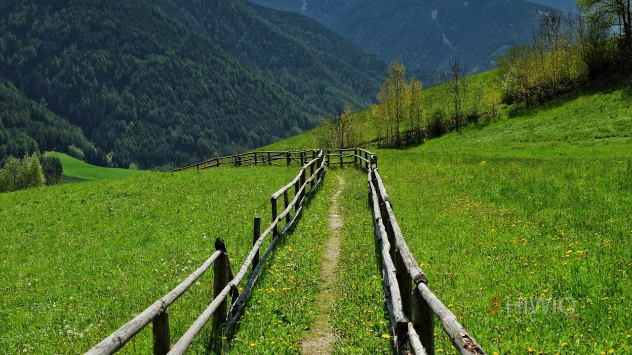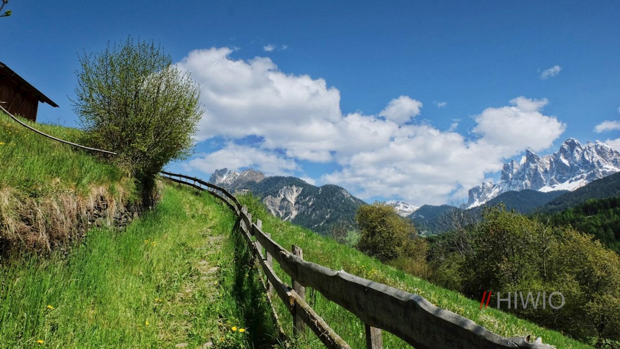 Spazierweg am Sonnenhang des Villnösstals mit Ausblick auf die Villnösser Geisler