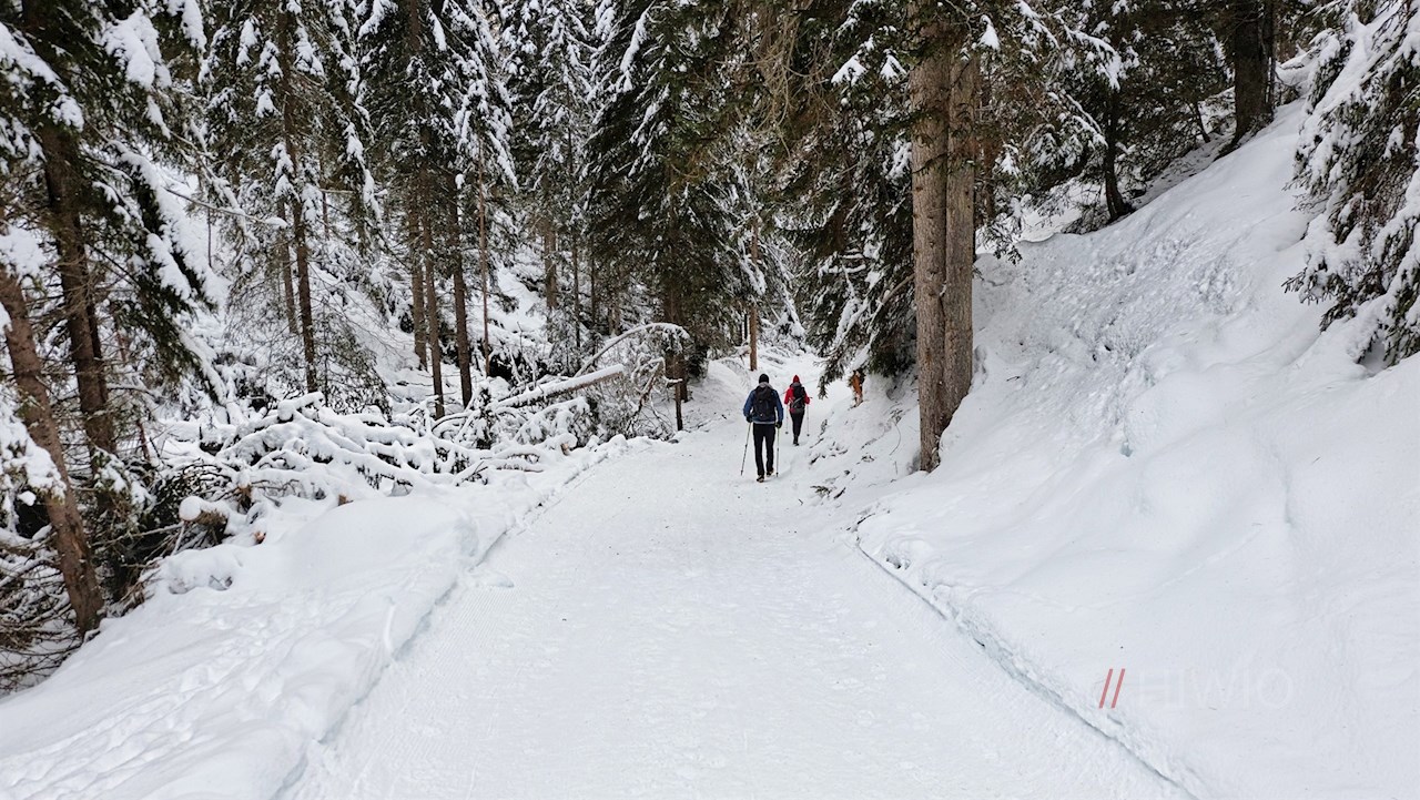 Den Rückweg von Zans tritt man zunächst auf dem Hinweg an. Nach etwa einer Viertelstunde zweigt rechts der bereits bekannte Winterwanderweg nach Zans ab, der Wanderern vorbehalten ist. Wer hingegen die Rodel dabeihat, folge der Beschilderung zur nahegelegenen Rodelbahn, auf der man in vergnüglichen Schwüngen zum Ausgangspunkt hinabfahren kann.