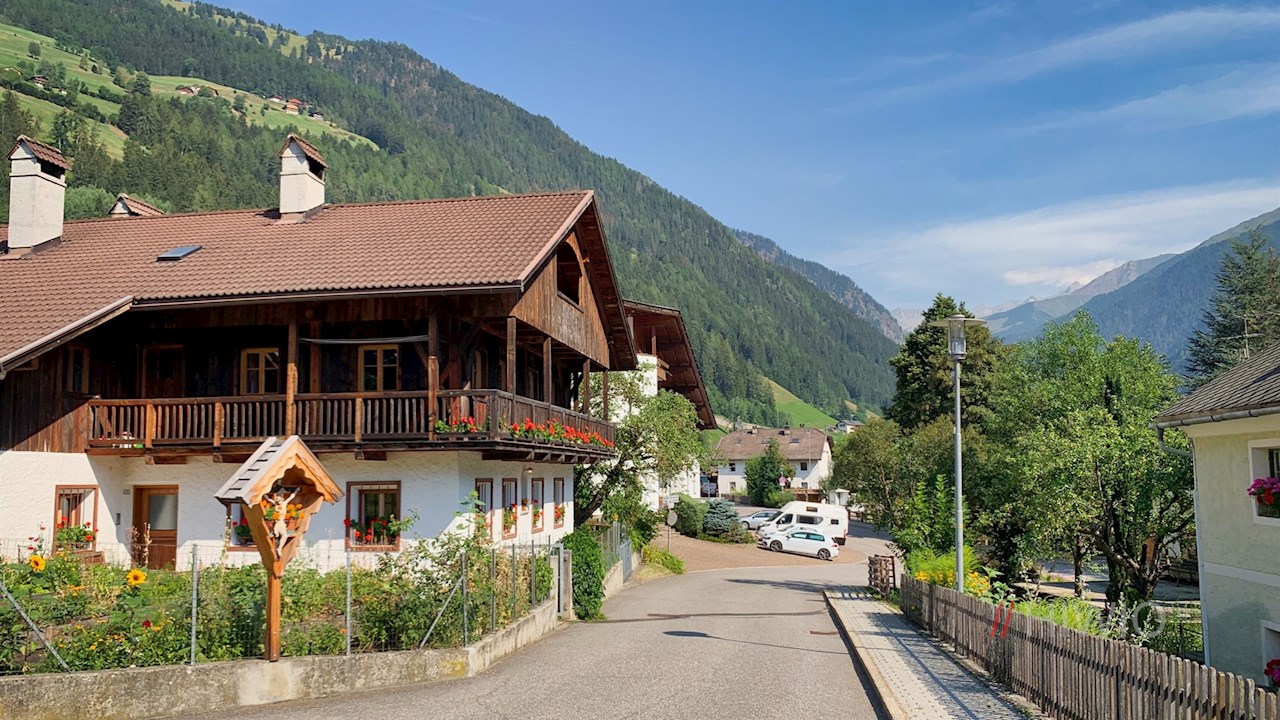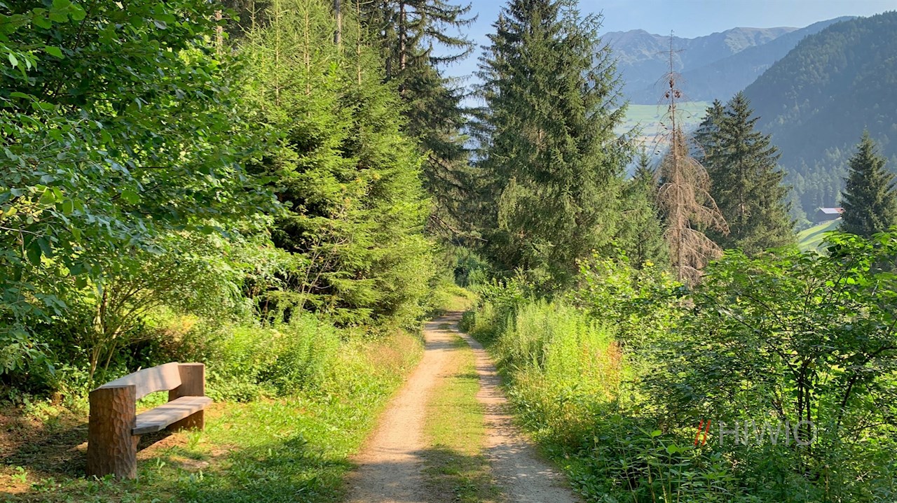 Er führt durch schattenverheißenden Mischwald und aussichtsreiche Wiesen an verstreuten Häusern und Höfen vorbei und öffnet dabei immer wieder schöne Ausblicke auf die abgeschiedene Pfunderer Bergwelt.