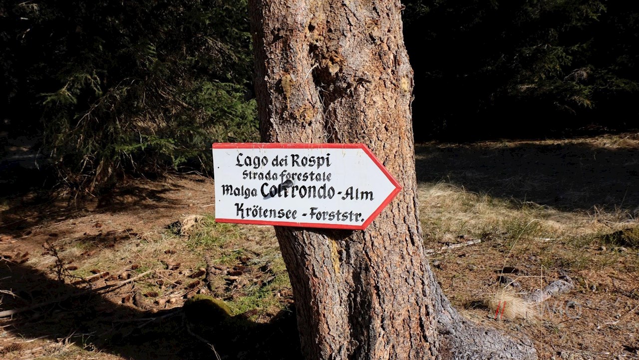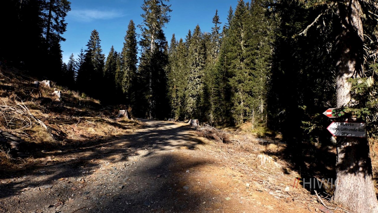 Rechter Hand zweigt alsbald der gemütliche Weg Nr. 149 ab, der zur Coltrondo Alm hinter der Südtiroler Landesgrenze führt.