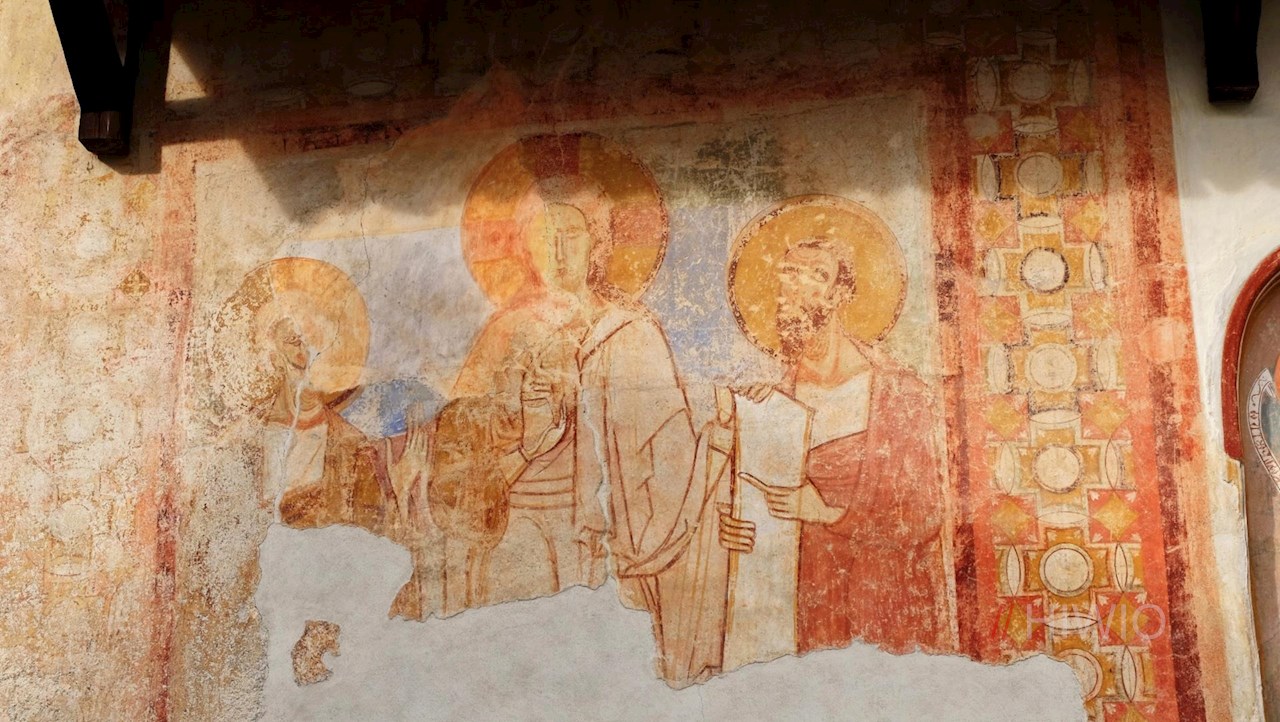 Schließlich erreicht man die kleine Pfarrkirche St. Peter, die in ihrem Inneren romanische Fresken und Malereien aus der vorgotischen und der gotischen Zeit birgt.