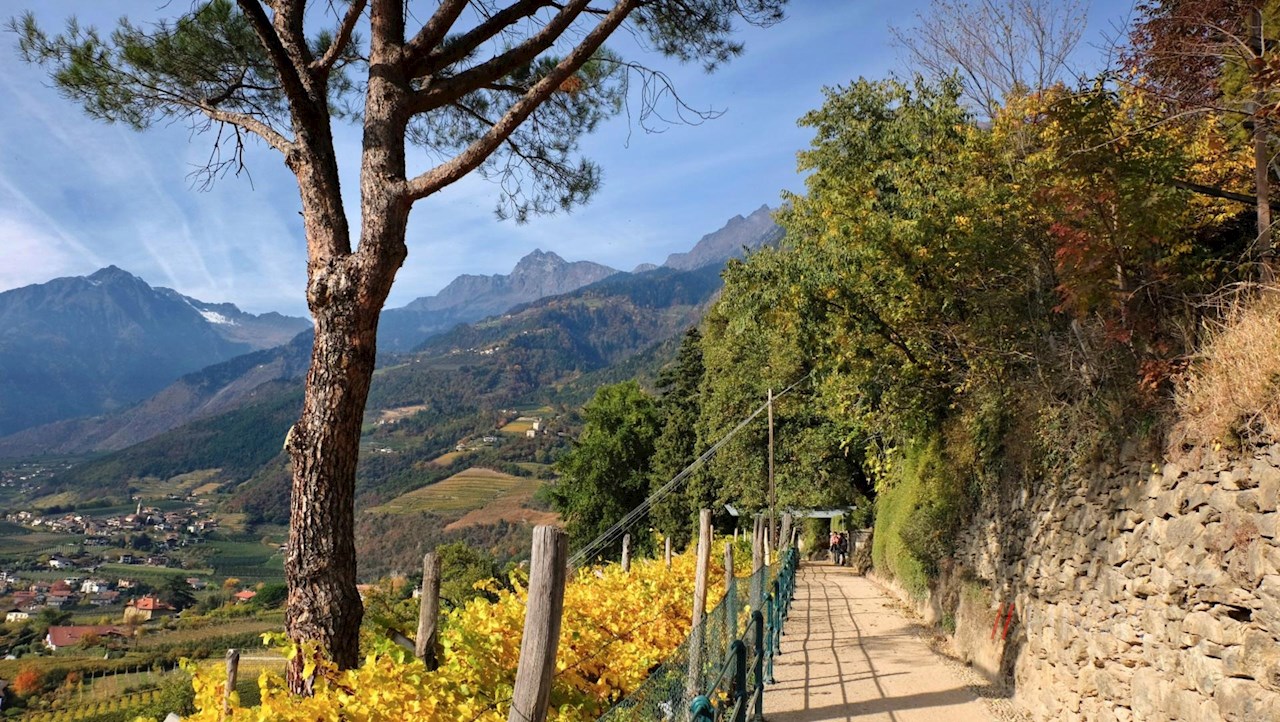 Von Meran aus führen mehrere Wege auf den weithin bekannten Tappeinerweg. Diese Wanderung wählt den Einstieg nahe der Landesfürstlichen Burg.