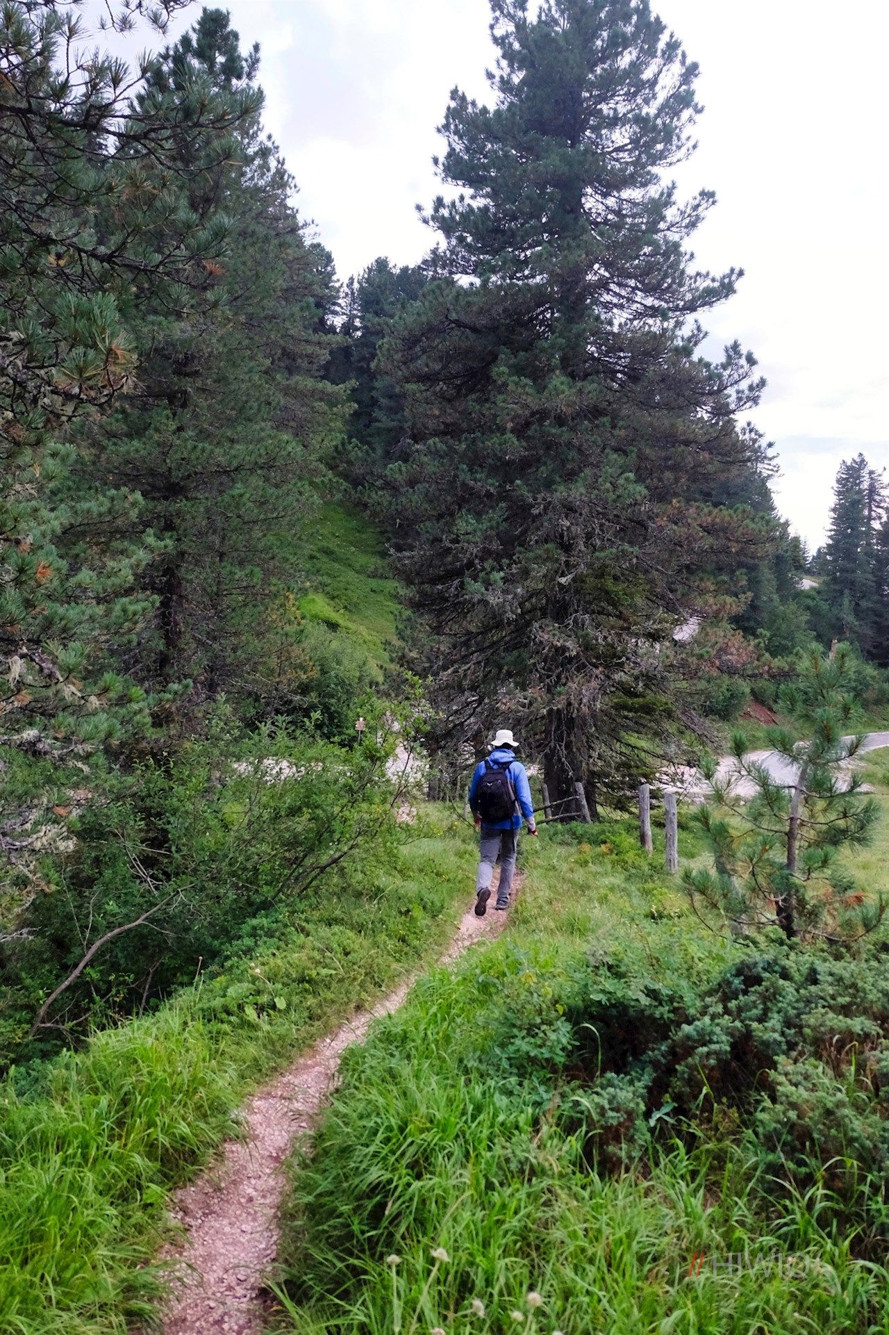 Von der Würzjochhütte folgt man zunächst der asphaltierten Würzjochstraße. Wenig später zweigt am linken Straßenrand der Wald- und Wiesenweg Nr. 8 in Richtung Halslhütte ab, der weiter unten erneut in die Straße mündet. Auf ihr wandert man zum Ausgangspunkt in Cialciagn zurück.