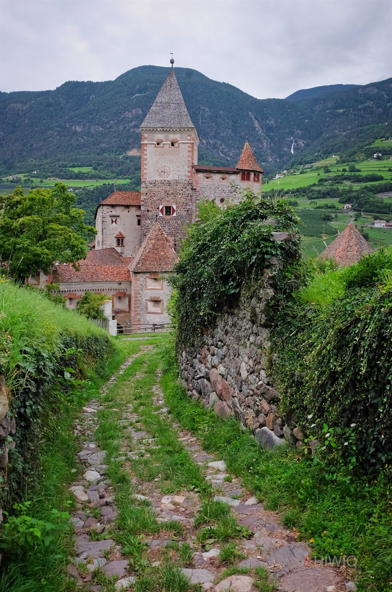 Die Wanderung nach Tagusens beginnt in Waidbruck. Nahe der Dorfkirche weist ein Wanderschild den gepflasterten Anstieg zur nahen Trostburg, die auf einem steil abfallenden Felsvorsprung über Waidbruck und das untere Eisacktal zu wachen scheint.