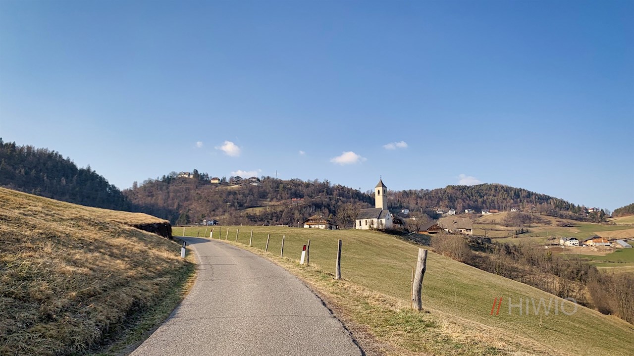 Der Wegnummer 24 in Richtung Erdpyramiden folgend, wandert man zunächst ein kurzes Stück die Straße entlang, von der kurz darauf der anfangs asphaltierte Wanderweg Nr. 21A nach Klobenstein abzweigt.