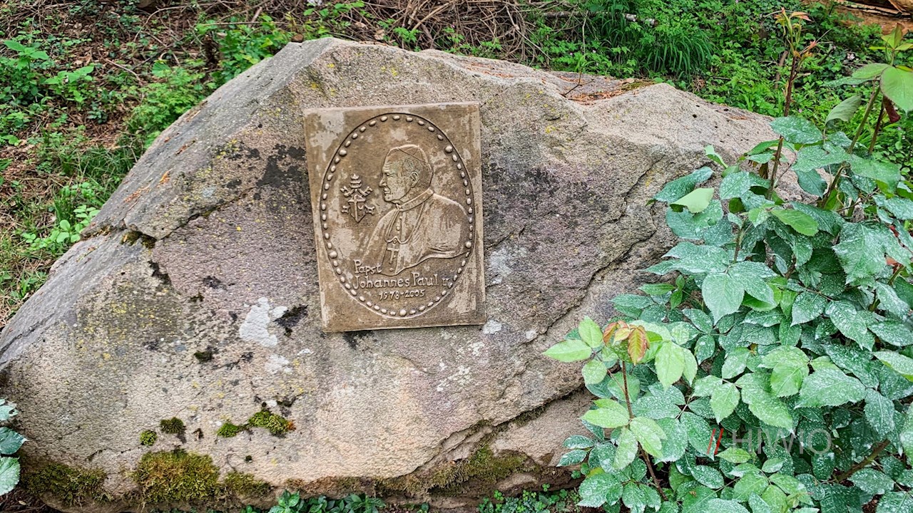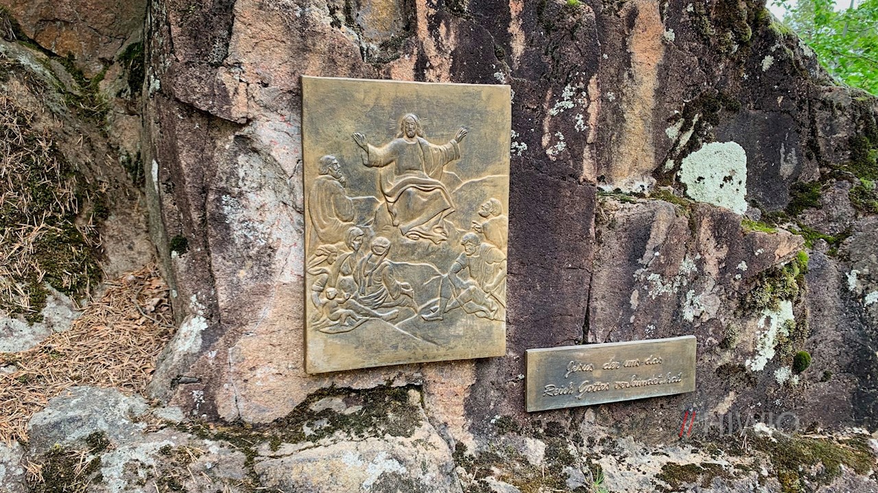Vom Parkplatz schlängelt sich der von Bronzereliefs gesäumte Besinnungsweg Nr. 5 durch schütteren Mischwald und Wiesen nach St. Hippolyt.