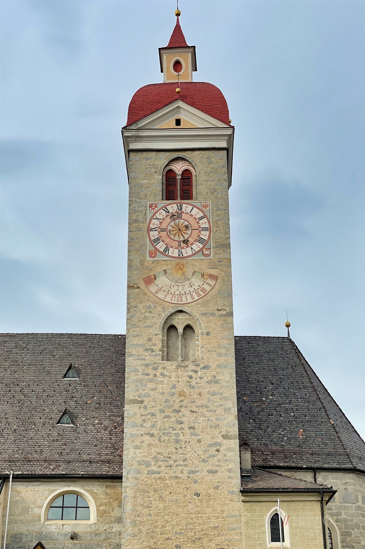 Die Wanderung auf dem Apfelweg beginnt bei der Dorfkirche des sonnenverwöhnten, von Apfelwiesen umrahmten Dorfes Natz.