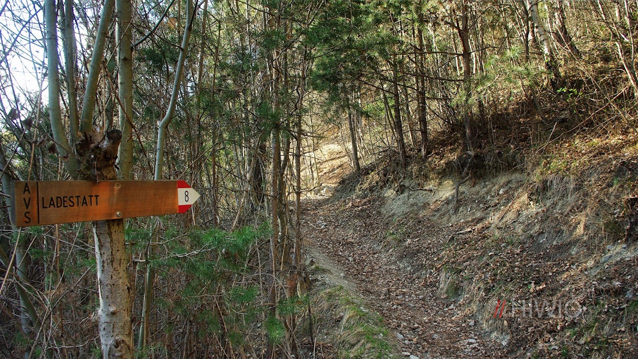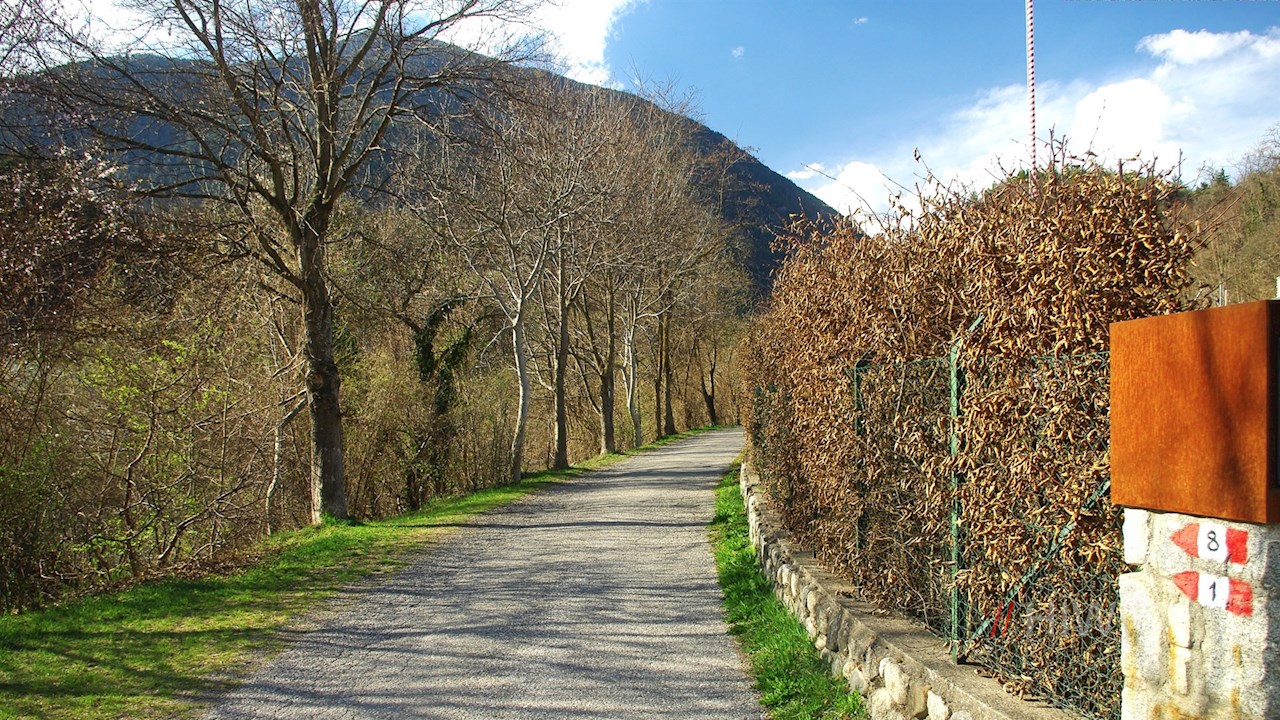 Am Parkplatz an der Westseite der Klostermauern zweigt der Weg Nr. 8 ab. Er führt entlang des Eisacks ins Riggertal, durch das dereinst die Rienz floss.