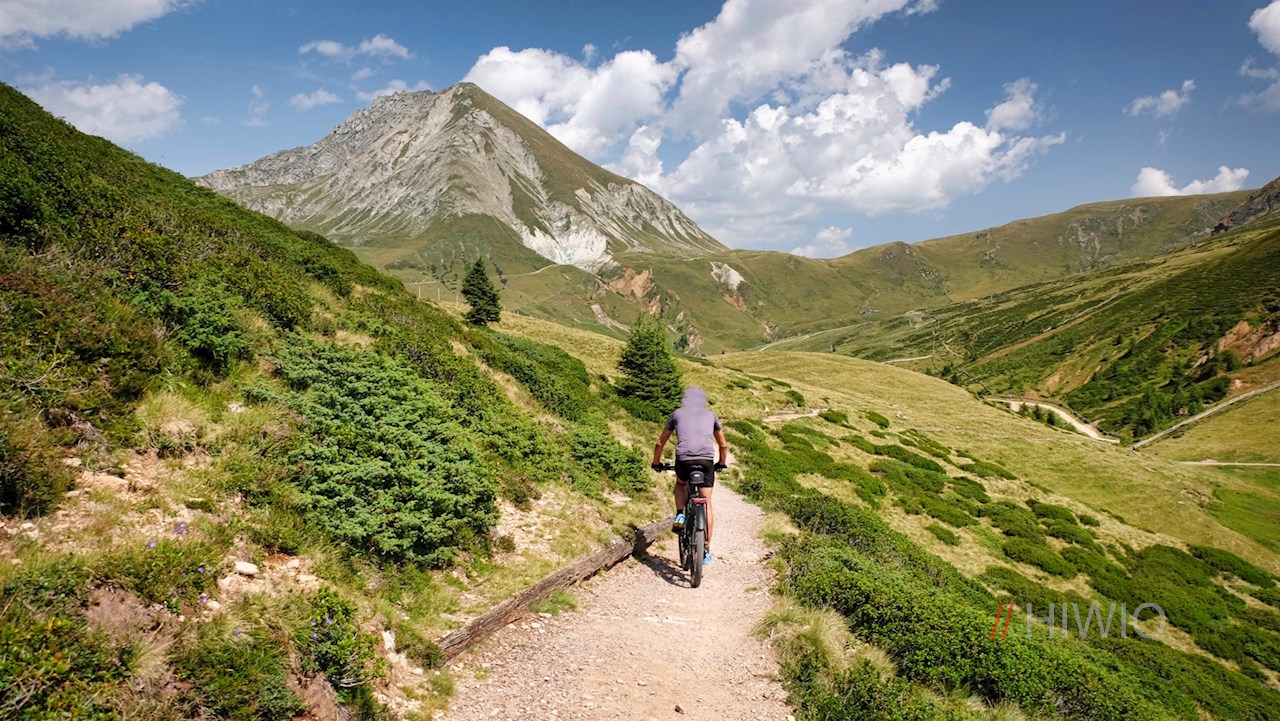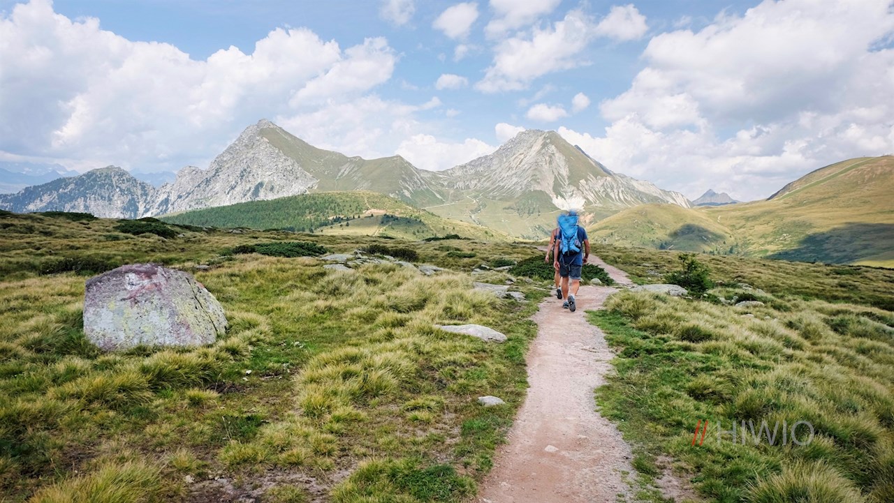Vom Kreuzjoch wandert man vor der Kulisse des spitz zulaufenden Ifinger zum Kreuzjöchl zurück, von dem der Europäische Fernwanderweg über das freie Almgelände zur Meraner Hütte und der dahinter liegenden Kirchsteiger Alm hinabführt. Beide Almhütten sind bekannt für ihre verführerische Speisekarte, die gemütliche Atmosphäre und ihre idyllische Lage am Fuße des Mittager und des Spieler.