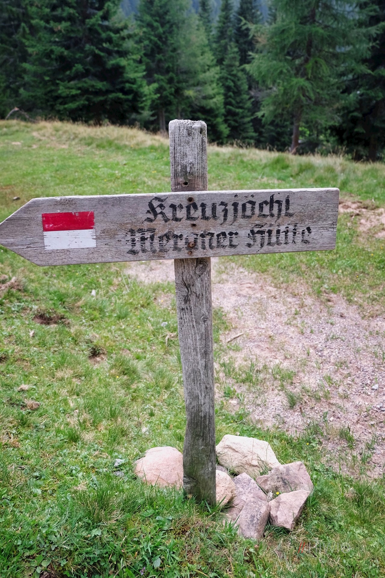 Die Wanderung auf das Kreuzjoch nimmt auf dem gebührenpflichtigen Parkplatz Falzeben in Hafling ihren Anfang.