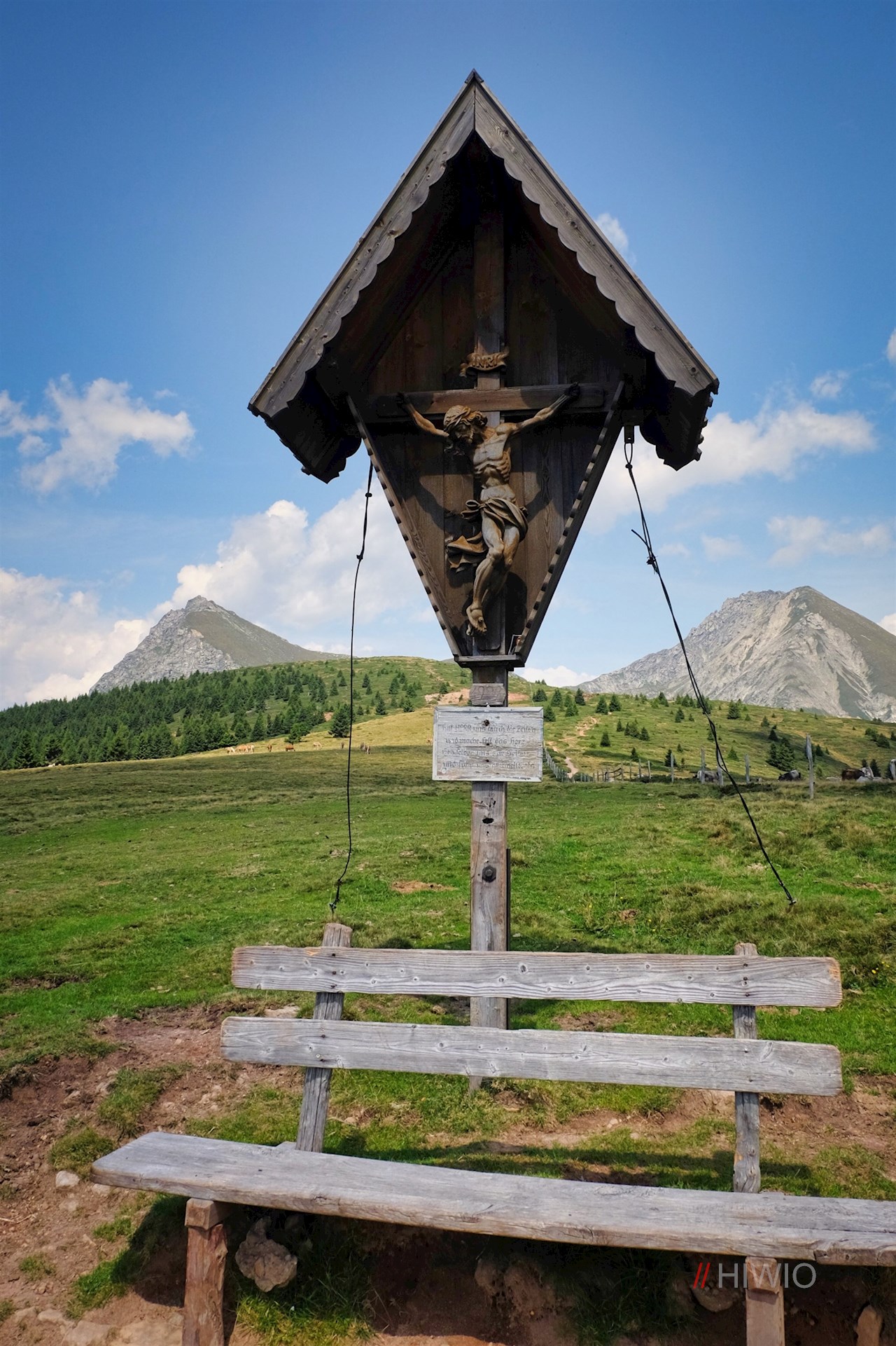 Nach wie vor der Wegnummer 15 folgend, schlängelt sich der angenehm ansteigende Waldweg von der Maiser Alm auf das 1.985 m hohe, zwischen dem Sarntal und dem Etschtal eingeschnittene Kreuzjöchl, auf dem sich bereits ein herrliches Panorama entfaltet.