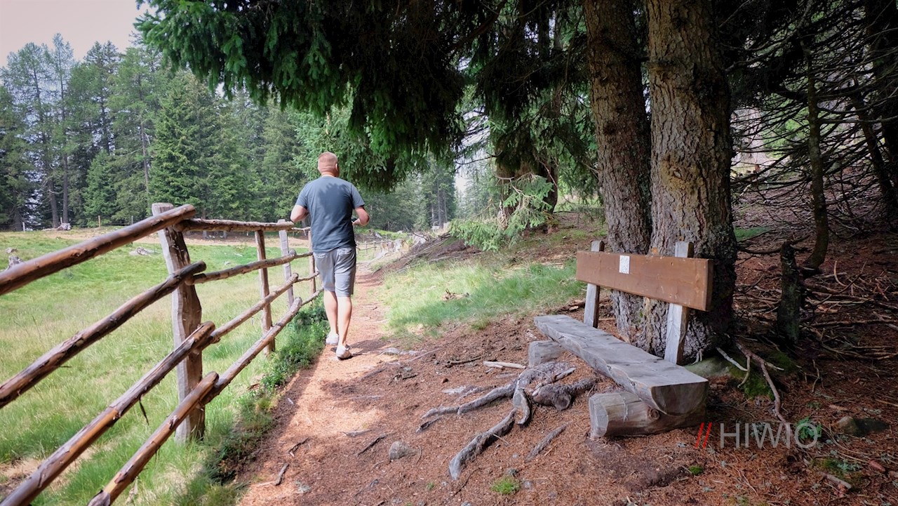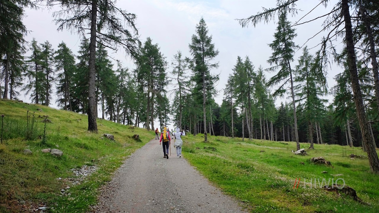 Hinter der Maiser Alm zweigt der Wanderweg Nr. 17 in Richtung Meran 2000 ab. Er führt im sanften Anstieg durch Wald und Weidewiesen am Wieser Schüpfl vorbei und öffnet dabei schöne Ausblicke auf die ringsum aufragende Bergwelt.