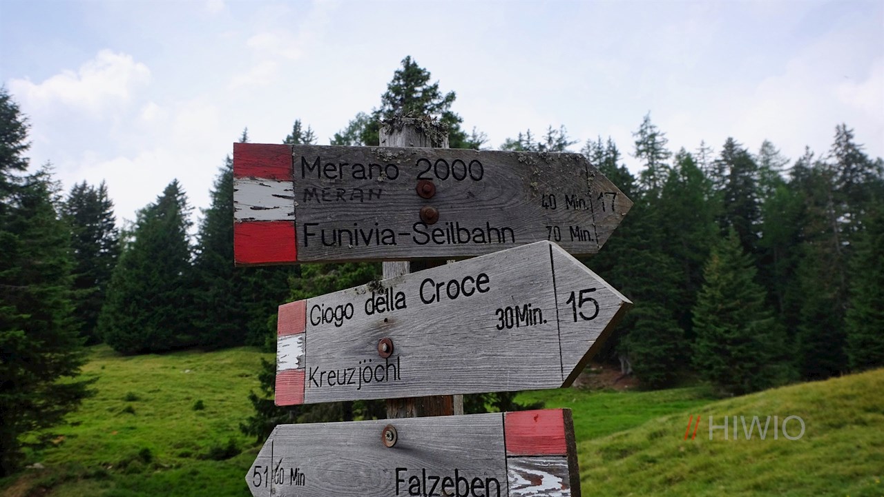 Ausgangspunkt dieser Hüttenwanderung im Wandergebiet Meran 2000 ist der gebührenpflichtige Wanderparkplatz Falzeben in Hafling.