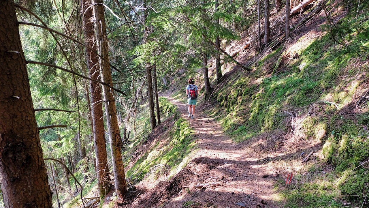 Oberhalb des beschaulichen Eisacktaler Dorfes Gufidaun führt ein gemütlicher Spazierweg zum geschichtsträchtigen Bad Froy und zum dahinter liegenden Flitzer Wasserfall