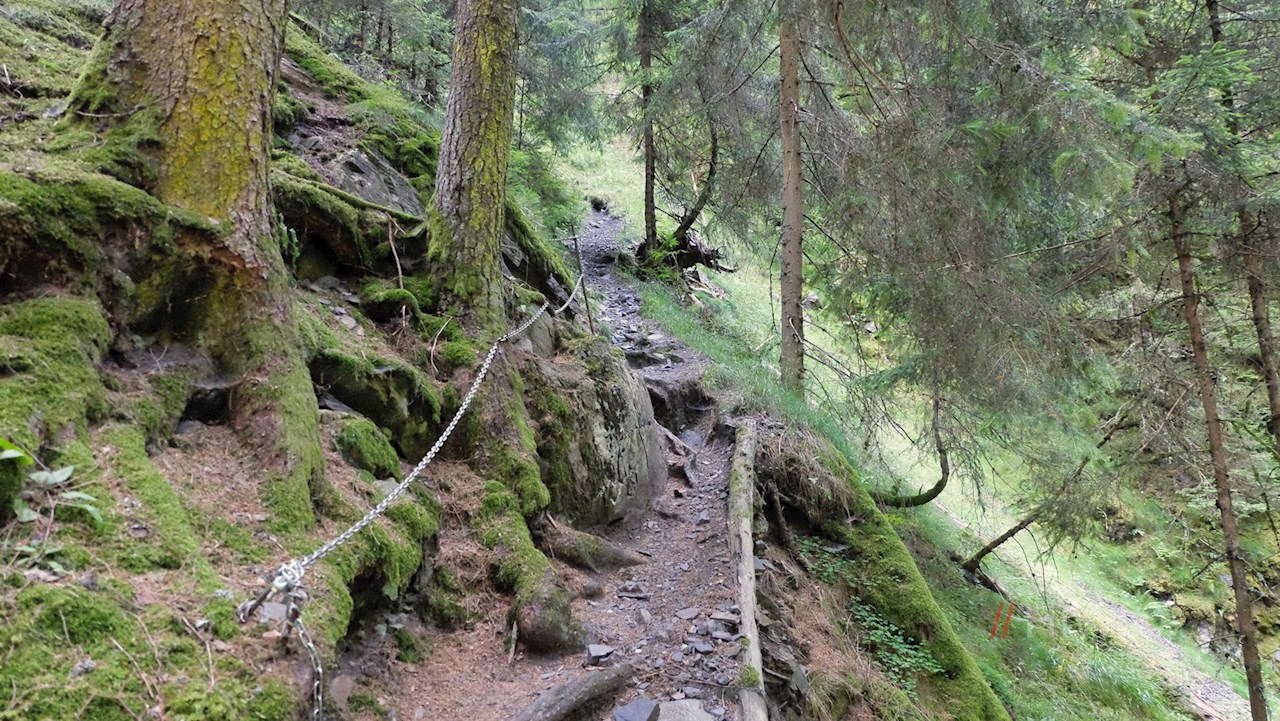 Der Rückweg vom Flitzer Wasserfall erfolgt auf dem Hinweg.