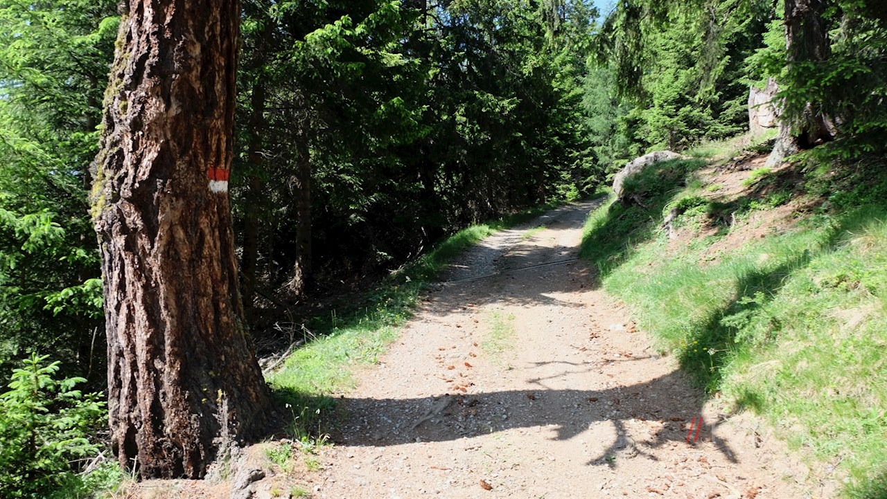 Nahe dem Gasthof Nussbaumer zweigt der Wanderweg Nr. 22 in Richtung Hühnerspielhütte ab. Der anfangs asphaltierte Weg geht alsbald in einen Wald- und Wiesenpfad über, auf dem sich malerische Ausblicke auf den einstigen Luftkurort Gossensass erschließen.