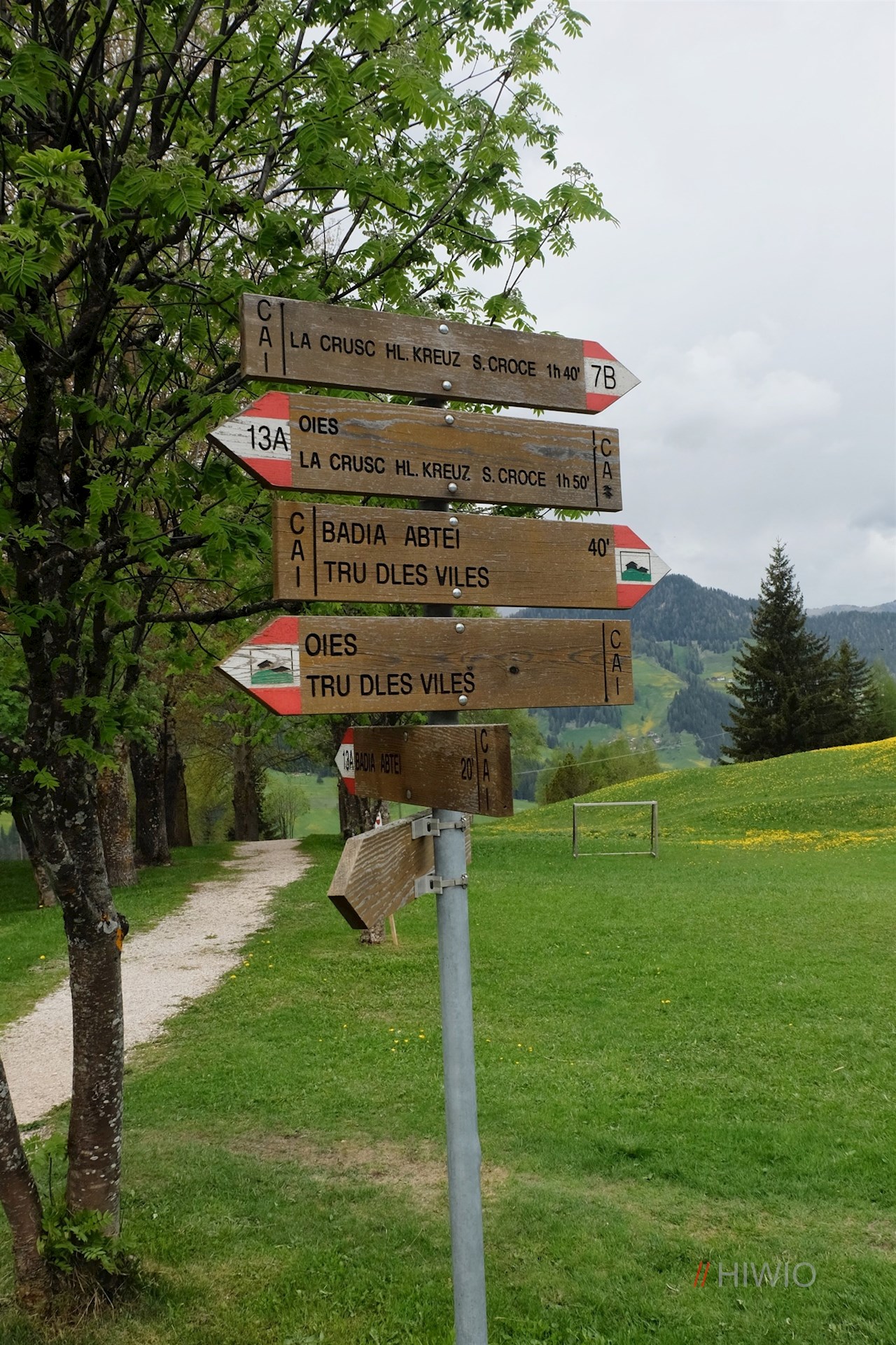 Ausgangspunkt dieser besinnlichen Wanderung ist St. Leonhard in Abtei (Badia). Nahe der Dorfkirche nimmt der sanft ansteigende Weg Nr. 13A seinen Anfang, der durch Wald- und Wiesenhänge nach Oies führt.