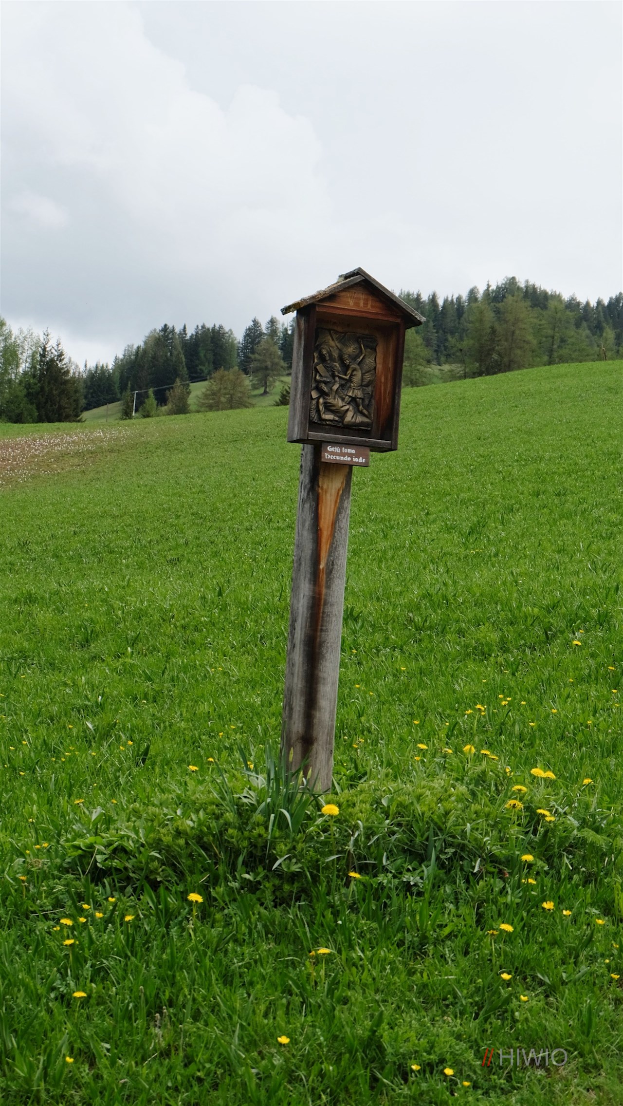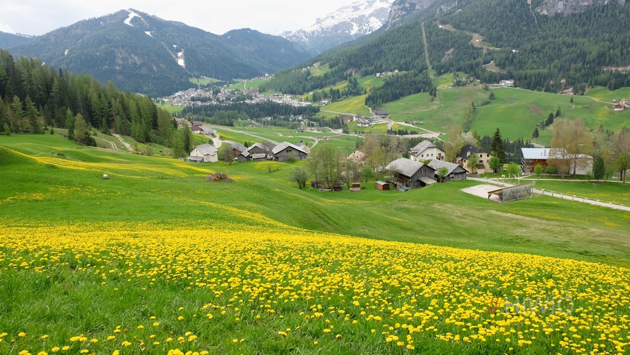 In diesem beschaulichen Weiler, in dem der später heiliggesprochene Wandermissionar Josef Freinademetz 1852 das Licht der Welt erblickte, zweigt der Weg Nr. 7B in Richtung La Crusc/Hl. Kreuz ab.