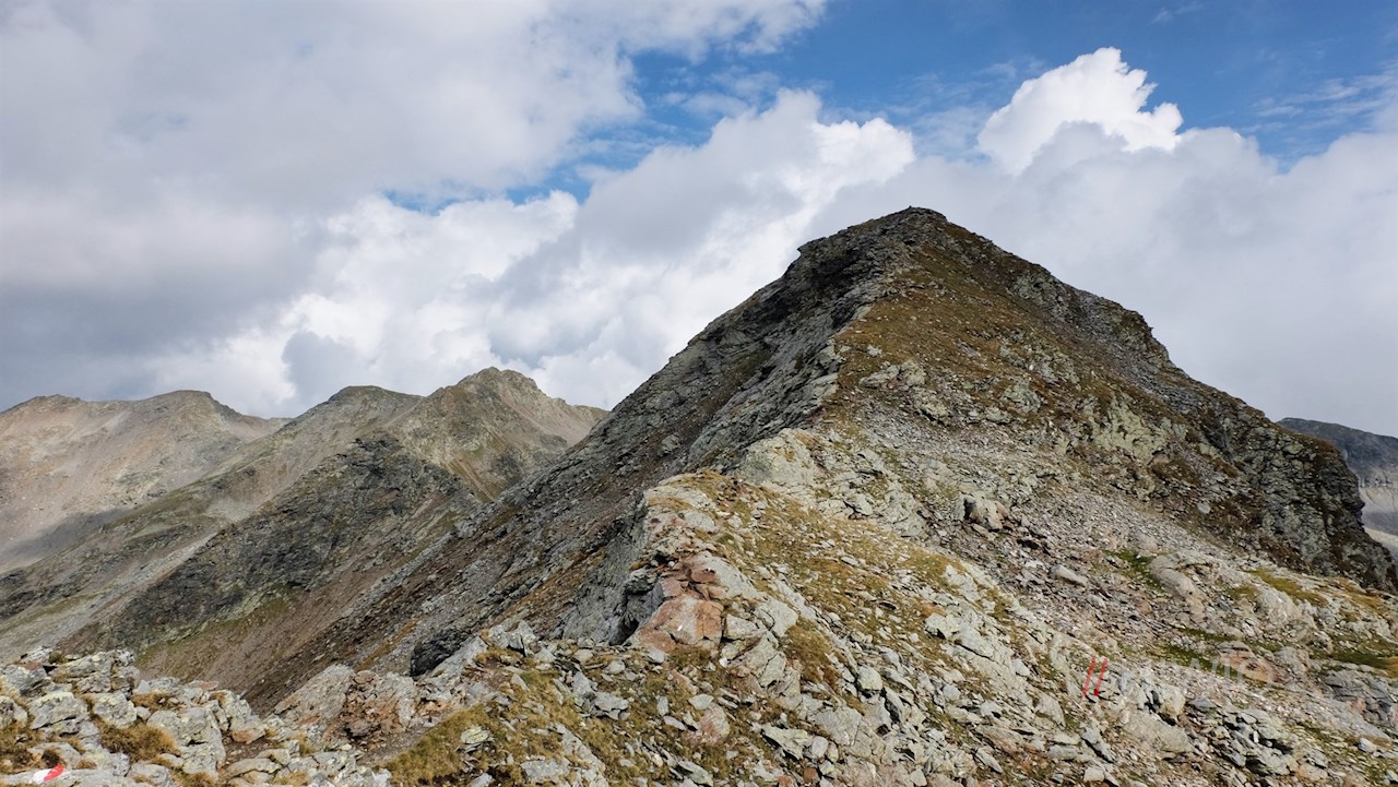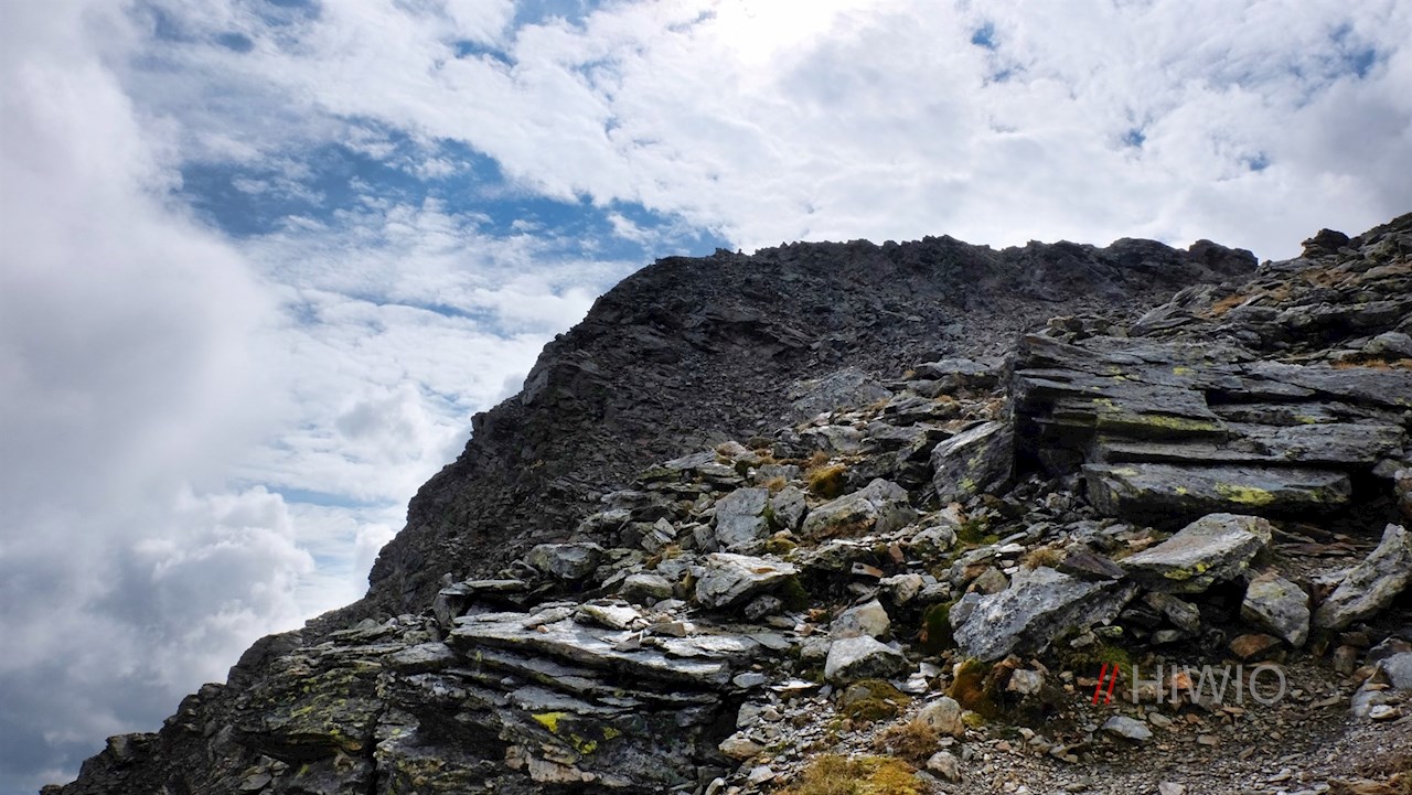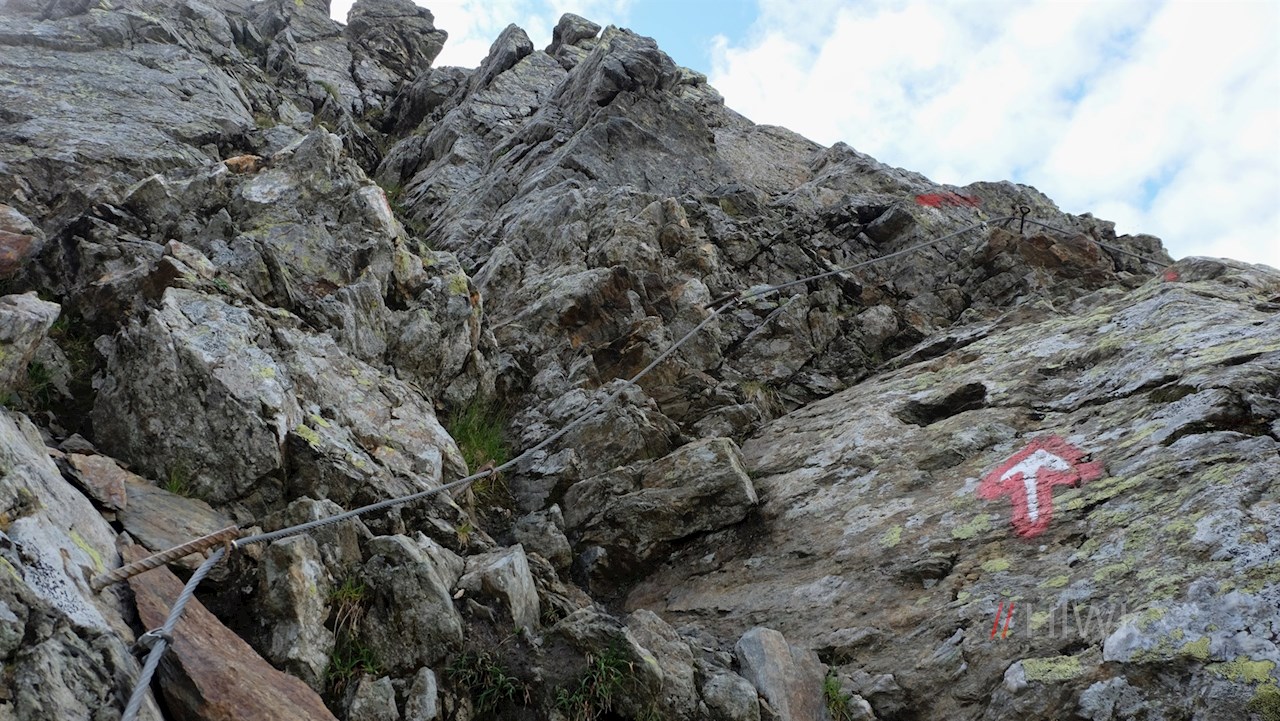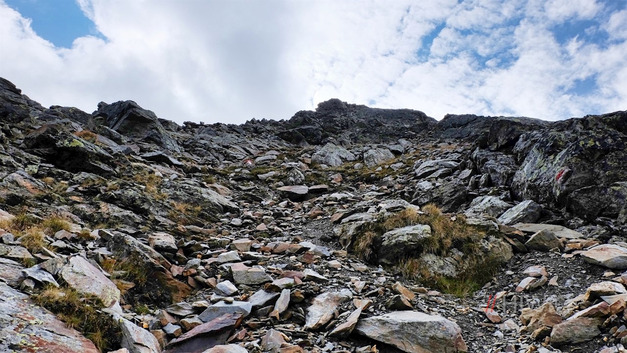Er führt im steten Anstieg über Blockwerk und Schrofen um die Lorenzenspitze und steigt zuletzt über einen steilen Blockschutthang auf den aussichtsreichen Gipfel an. Bei einer felsigen Passage hilft eine angebrachte Seilsicherung diese zu überwinden.