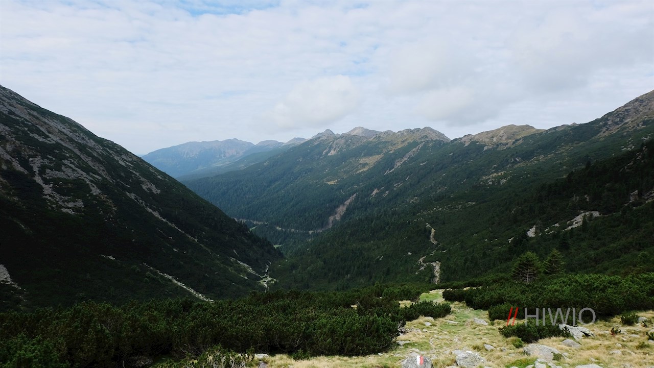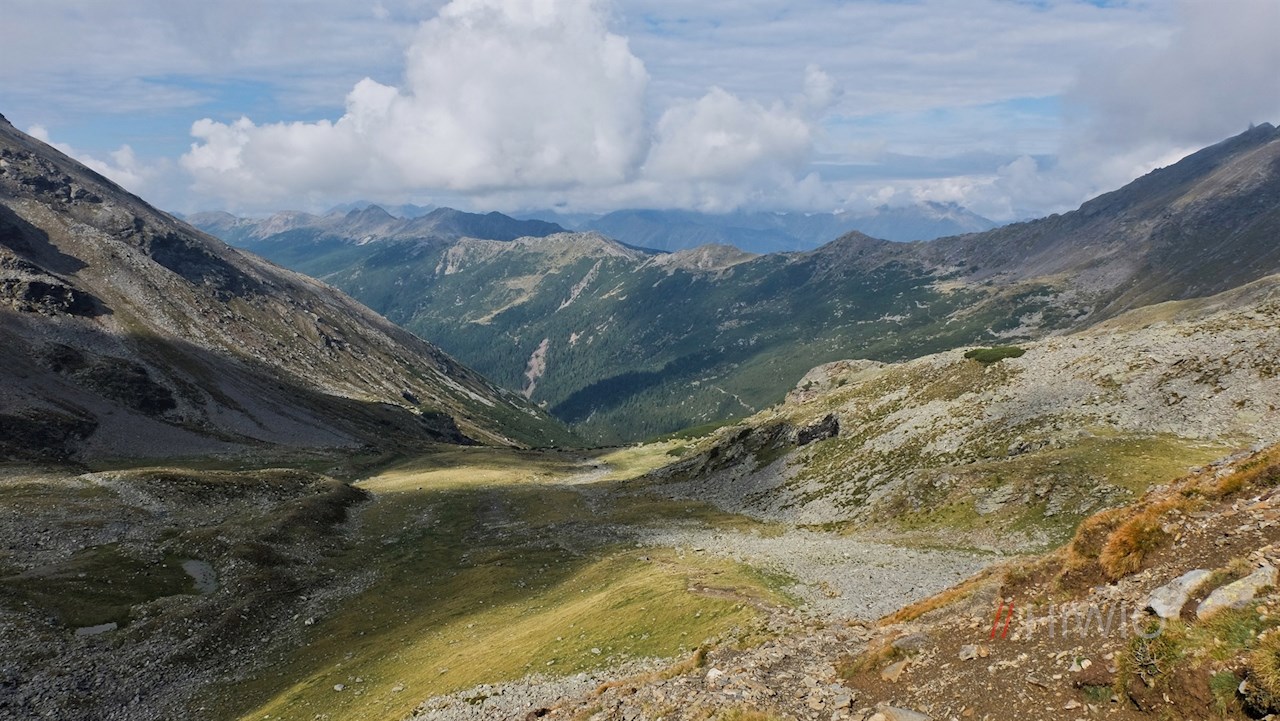 Weiterhin der Wegnummer 16 folgend, tritt man wenig später aus dem Wald heraus und wandert im großenteils steten Anstieg über steinige Latschen- und Grashänge in Richtung Flaggerscharte.