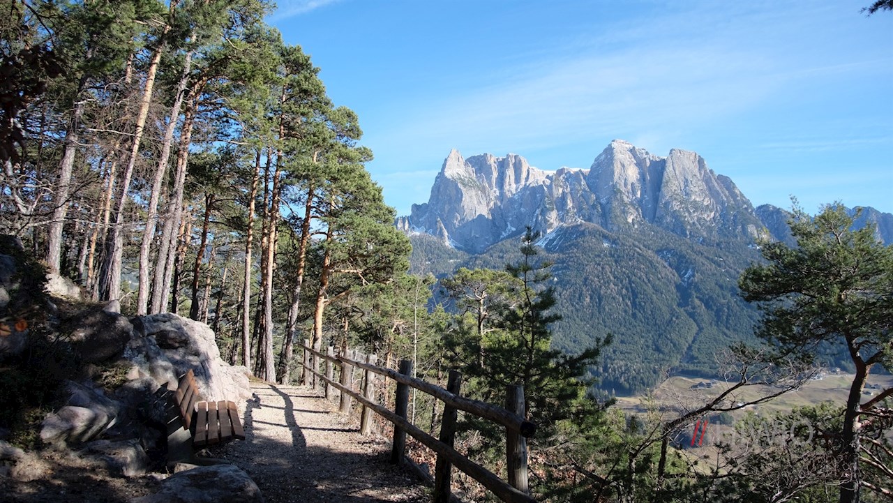 Dieser idyllisch gelegene Aussichtspunkt ist nach dem letzten König von Sachsen Friedrich August III. benannt, der des Öfteren hierher gewandert ist, um sich am malerischen Panorama zu erfreuen. Tatsächlich genießt man auf der gemütlichen Aussichtsbank einen wahrhaft königlichen Ausblick auf den Schlern, auf Seis, Völs und die gegenüberliegenden Eisacktaler und Rittner Hänge.