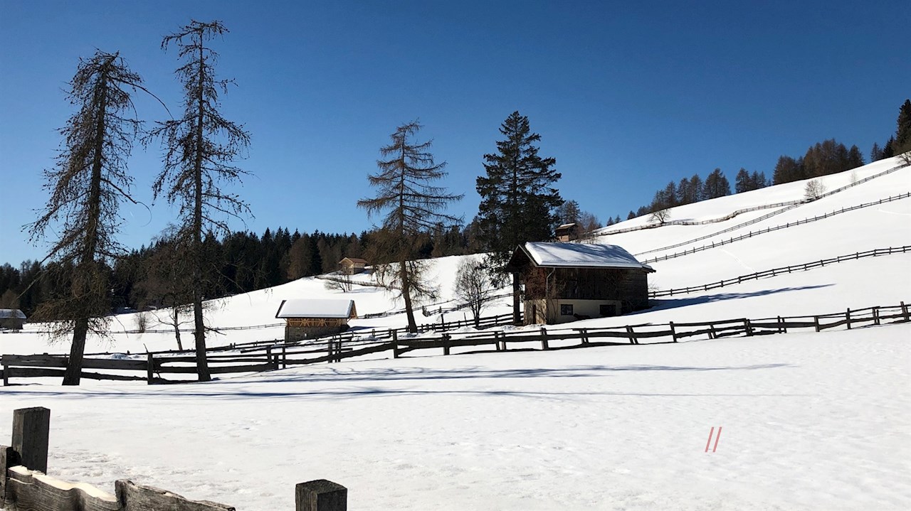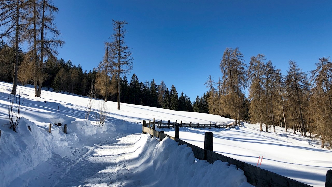 Diesem folgend, gelangen wir zum Restaurant Grüner Baum, von wo aus wir auf dem Hinweg nach Vöran, dem Ausgangspunkt des Rundwegs, zurückwandern.