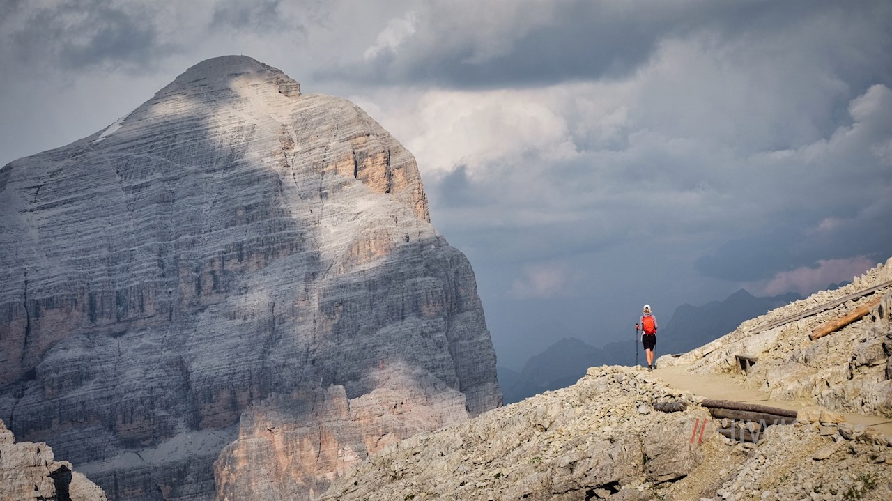 Von der Lagazuoi Seilbahn führt eine etwa zehnminütige Wanderung auf den Gipfel des einst heiß umkämpften Kleinen Lagazuoi, auf dem sich ein atemberaubend schöner Ausblick auf die Dolomiten entfaltet.