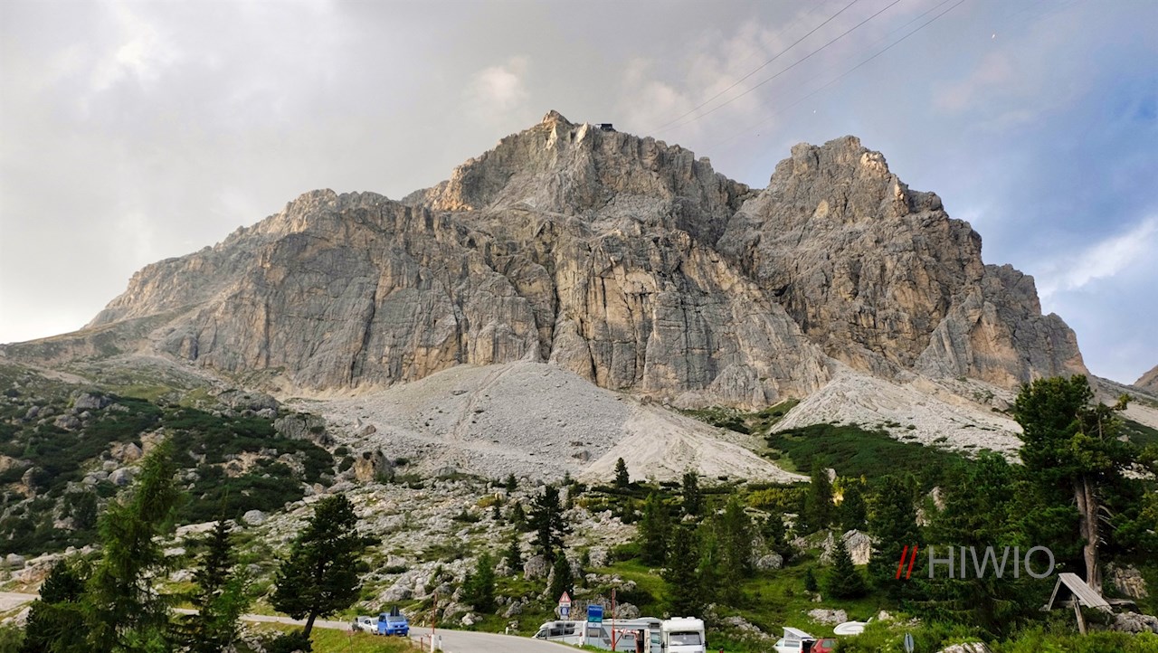 Die kurze Wanderung auf den Lagazuoi beginnt auf dem großen Parkplatz der Seilbahn Lagazuoi auf dem knapp hinter der Südtiroler Landesgrenze gelegenen Falzaregopass in Belluno.