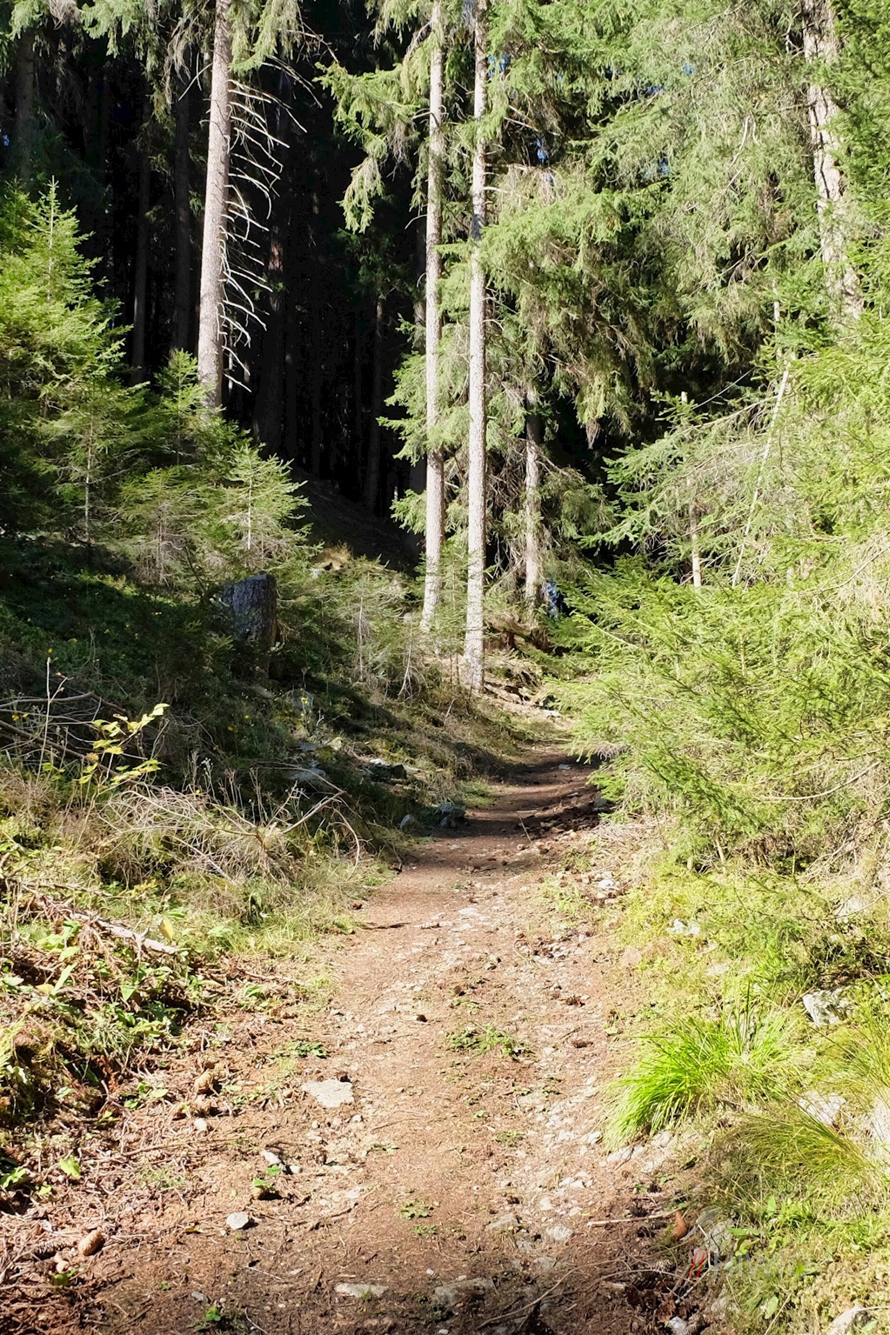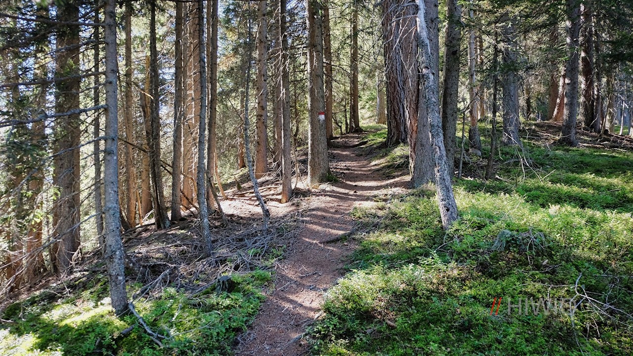 Neben dem Platzhof (keine Parkmöglichkeiten) zweigt links der anfangs breite Weg Nr. 25A ab, der alsbald in einen stetig ansteigenden Waldpfad übergeht.