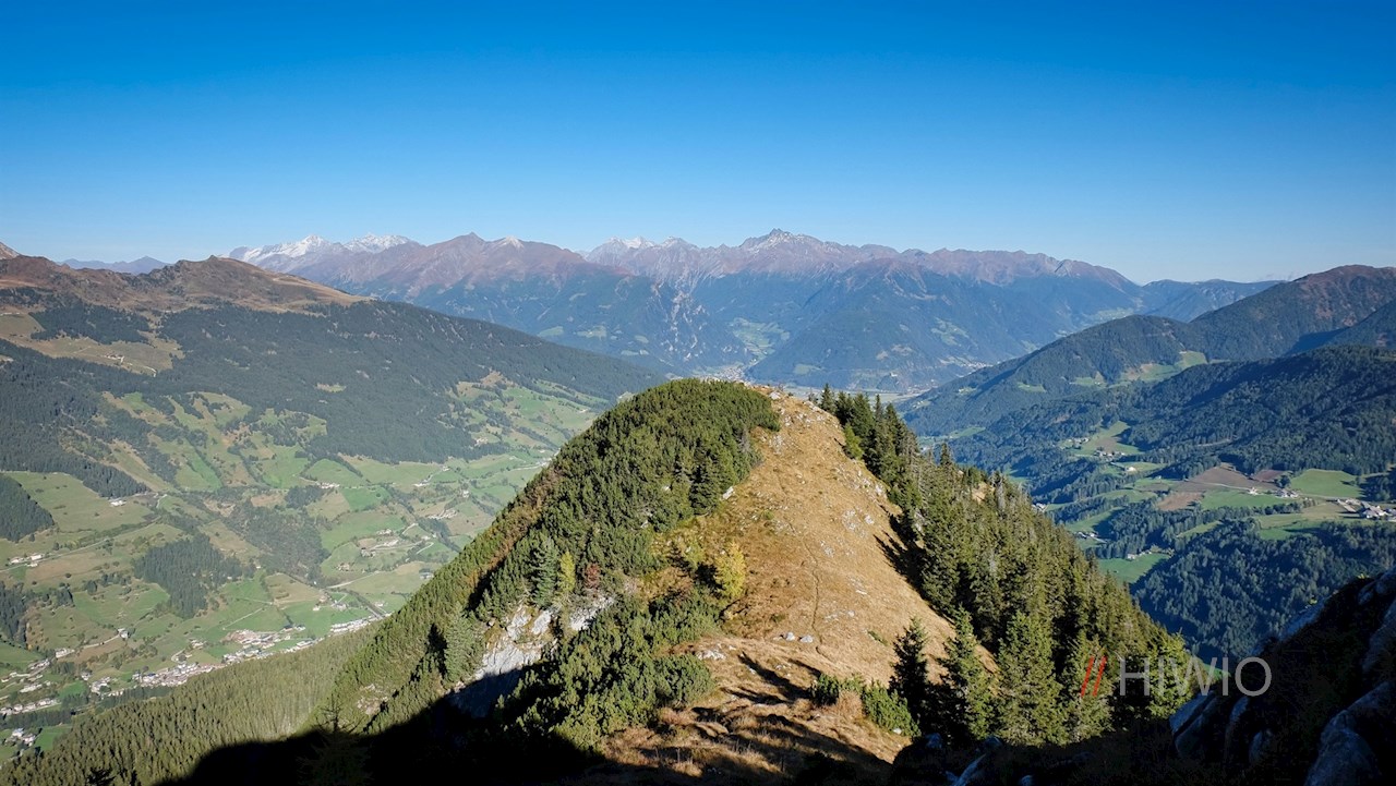 Neben dem Gipfelkreuz auf 2.192 m Höhe wähnt man sich schließlich auf einem wahren Felsenthron: Während sich im Nordwesten die Stubaier Alpen mit ihren mächtigen Dreitausendern wie dem Wilden Freiger oder dem Wilden Pfaff erheben, schweift der Blick weiter über die nördlich gelegenen Telfer Weißen, die Zillertaler und die Sarntaler Alpen. Wer genau hinschaut, kann sogar das höchstgelegene Schutzhaus Südtirols ausmachen: das Becherhaus auf dem gleichnamigen Gipfel.