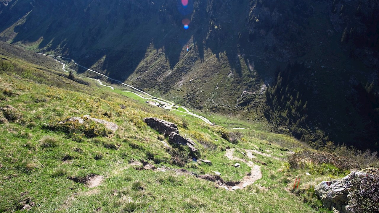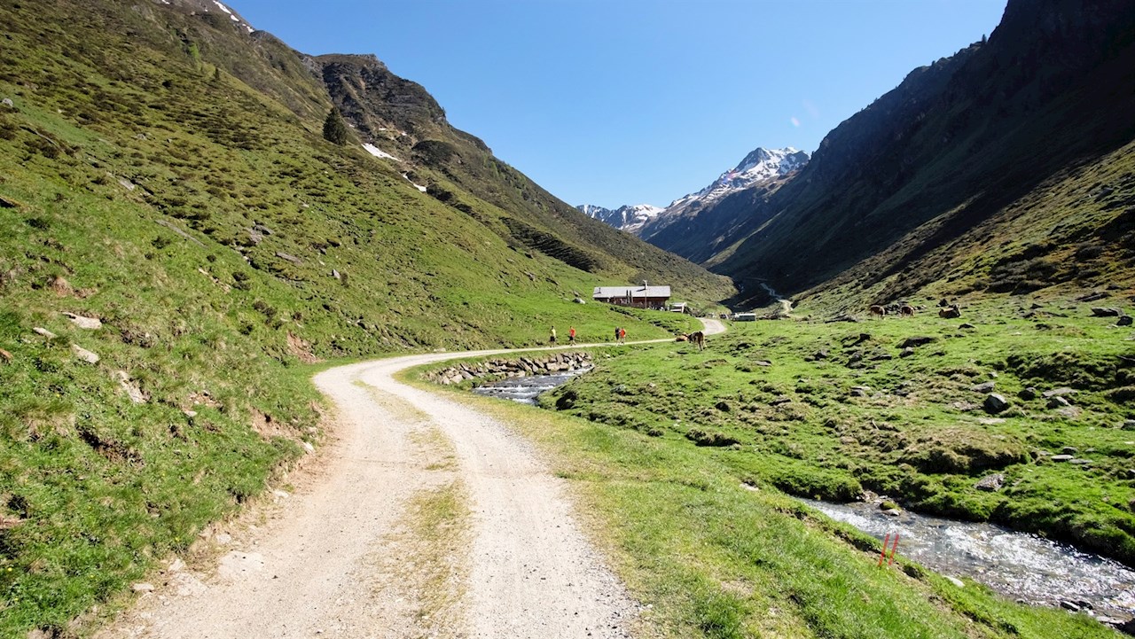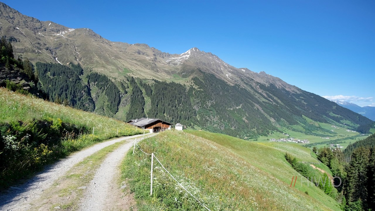 Von der Gewingesalm fällt der Weg Nr. 29A ziemlich steil über die von Zwergsträuchern bewachsenen Hänge in Richtung Martalm ab und eröffnet dabei atemberaubende Ausblicke auf die Ridnauner Bergwelt. Nach einer guten halben Stunde lädt diese gemütliche Almhütte zur erneuten Einkehr.