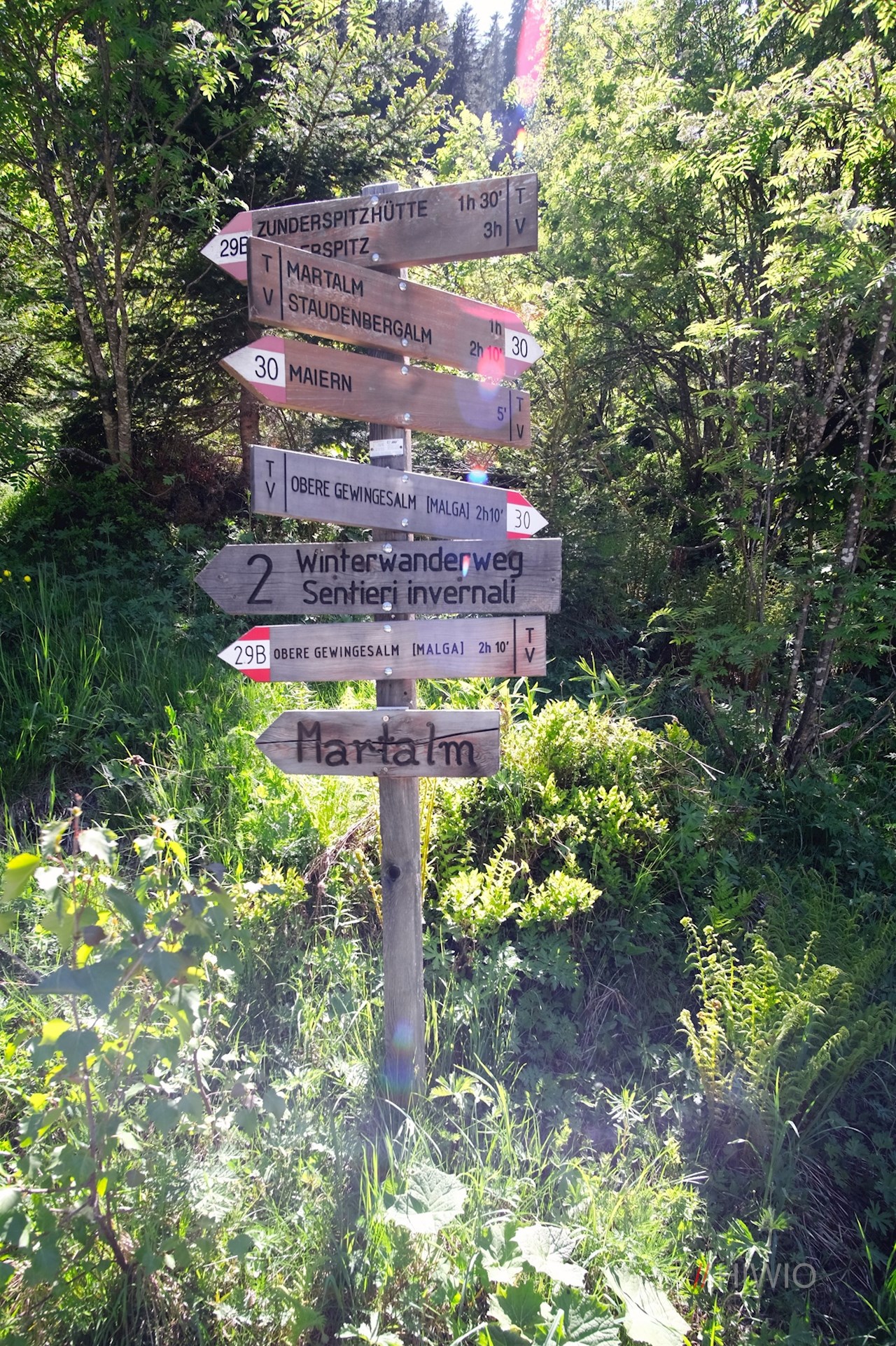 Angegebene Gehzeiten Gewingesalm und Martalm