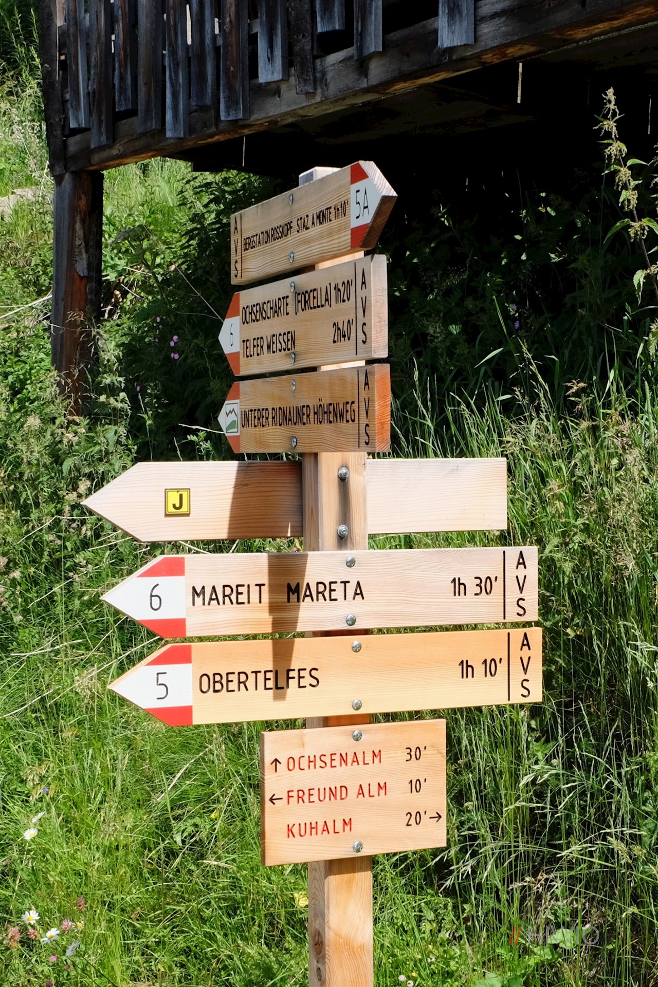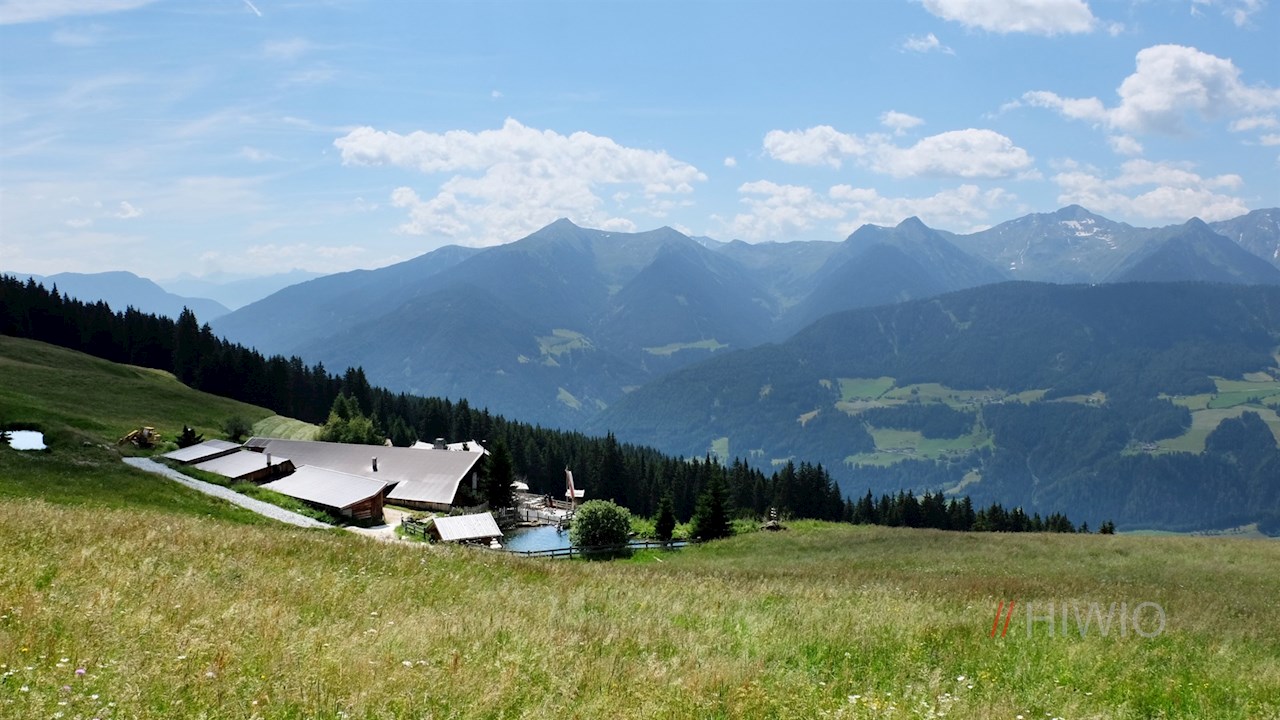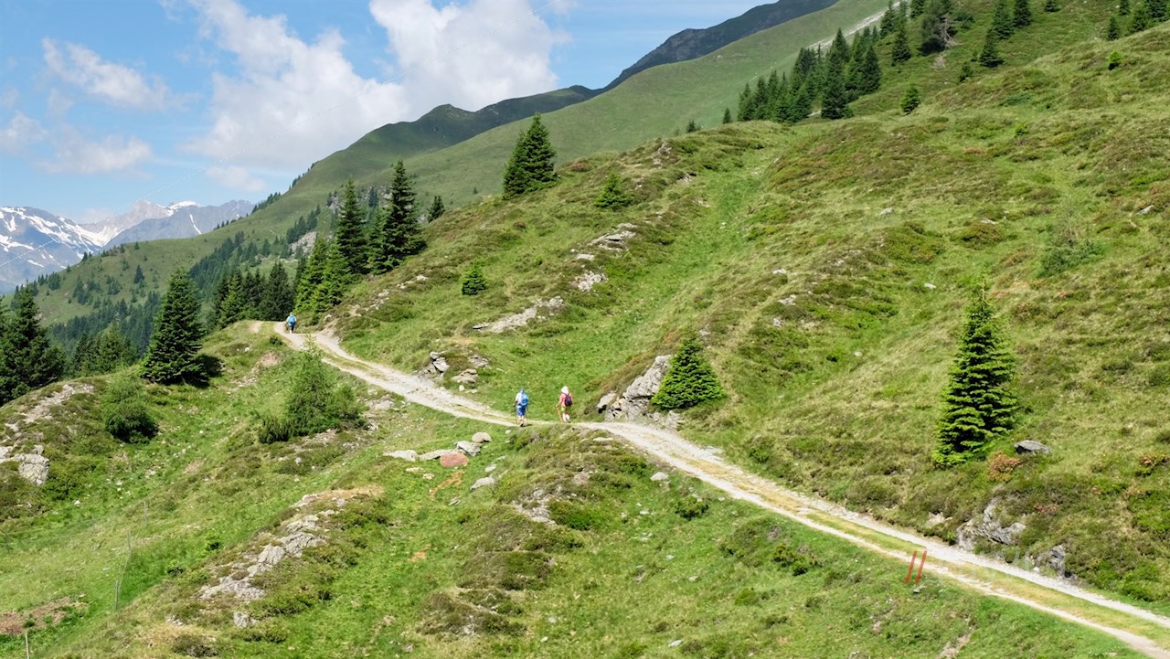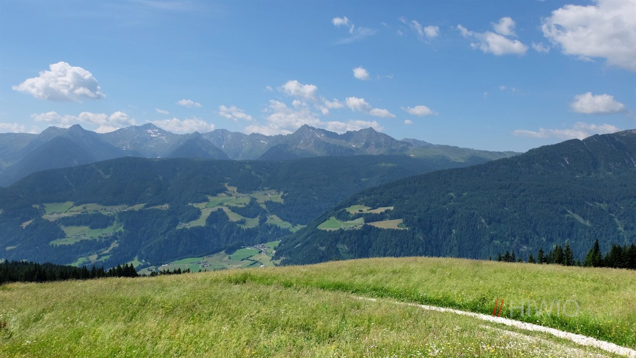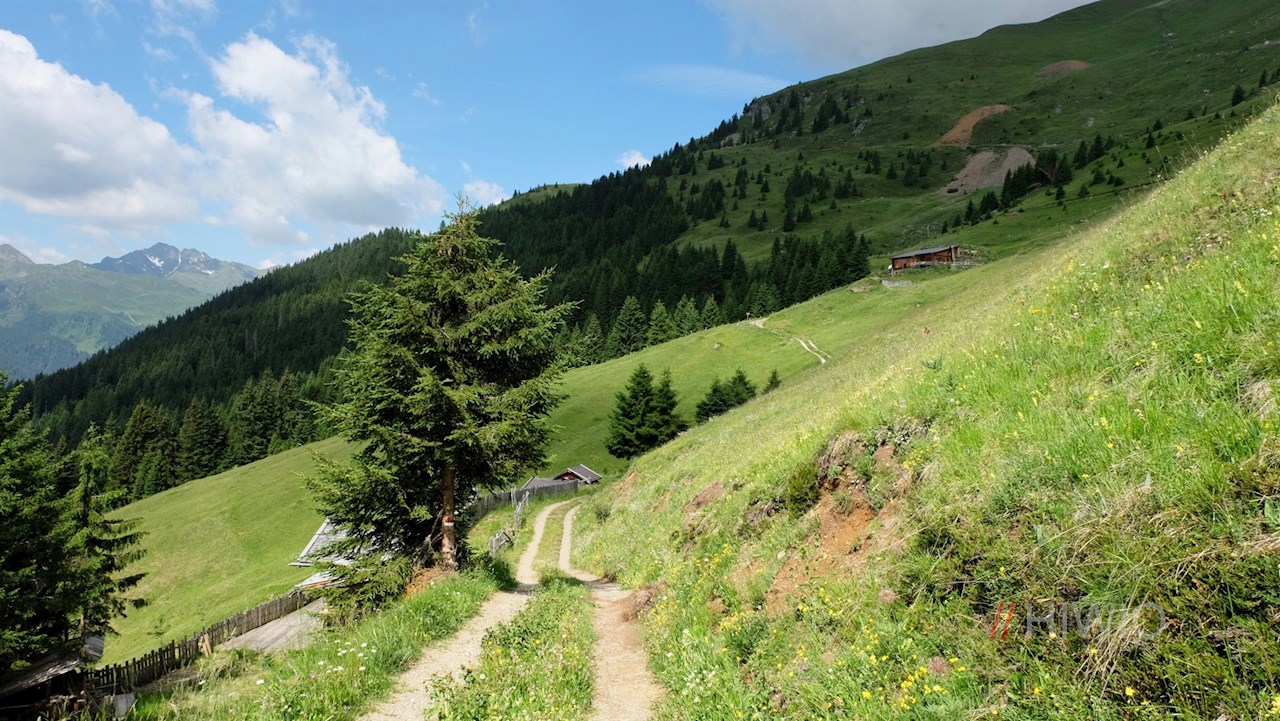 An der Bergstation schlägt man den links abzweigenden Ridnauner Höhenweg in Richtung Telfer Almen ein. Nach einem kurzen Anstieg schlängelt er sich sanft durch die blumenfrohen Bergwiesen und eröffnet dabei malerische Ausblicke auf die umliegende Bergwelt.
