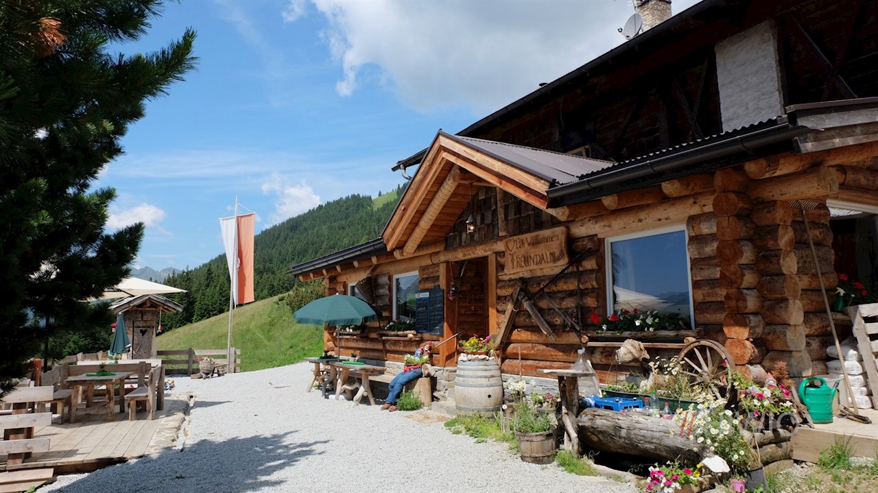 Hinter der Ochsenalm fällt der Weg Nr. 6 durch blumenreiche Almwiesen zur idyllisch gelegenen Freundalm ab. Neben den schmackhaften Almgerichten, der einladenden Panoramaterrasse und dem lauschigen Teich warten die freundlichen Hüttenwirte mit allerlei Spielmöglichkeiten und einem Streichelzoo für die kleinen Wanderer auf.