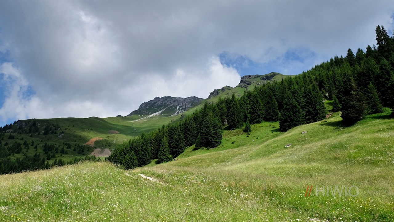 Er führt nach etwa 20 Minuten sanften Anstiegs zur Kuhalm, von der man auf dem bereits bekannten Wege zur Bergstation zurückwandert.