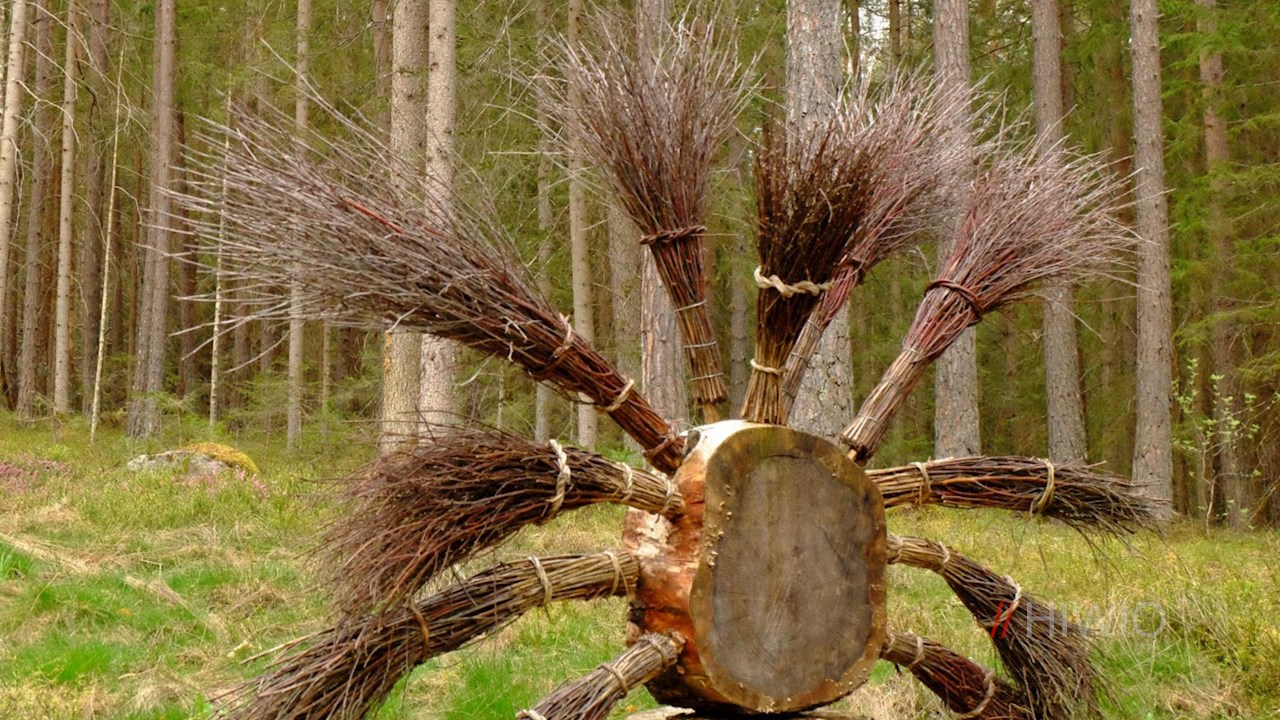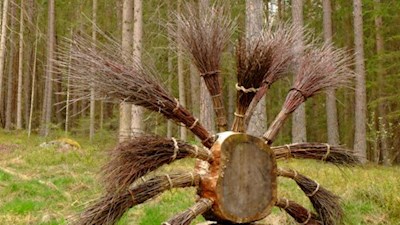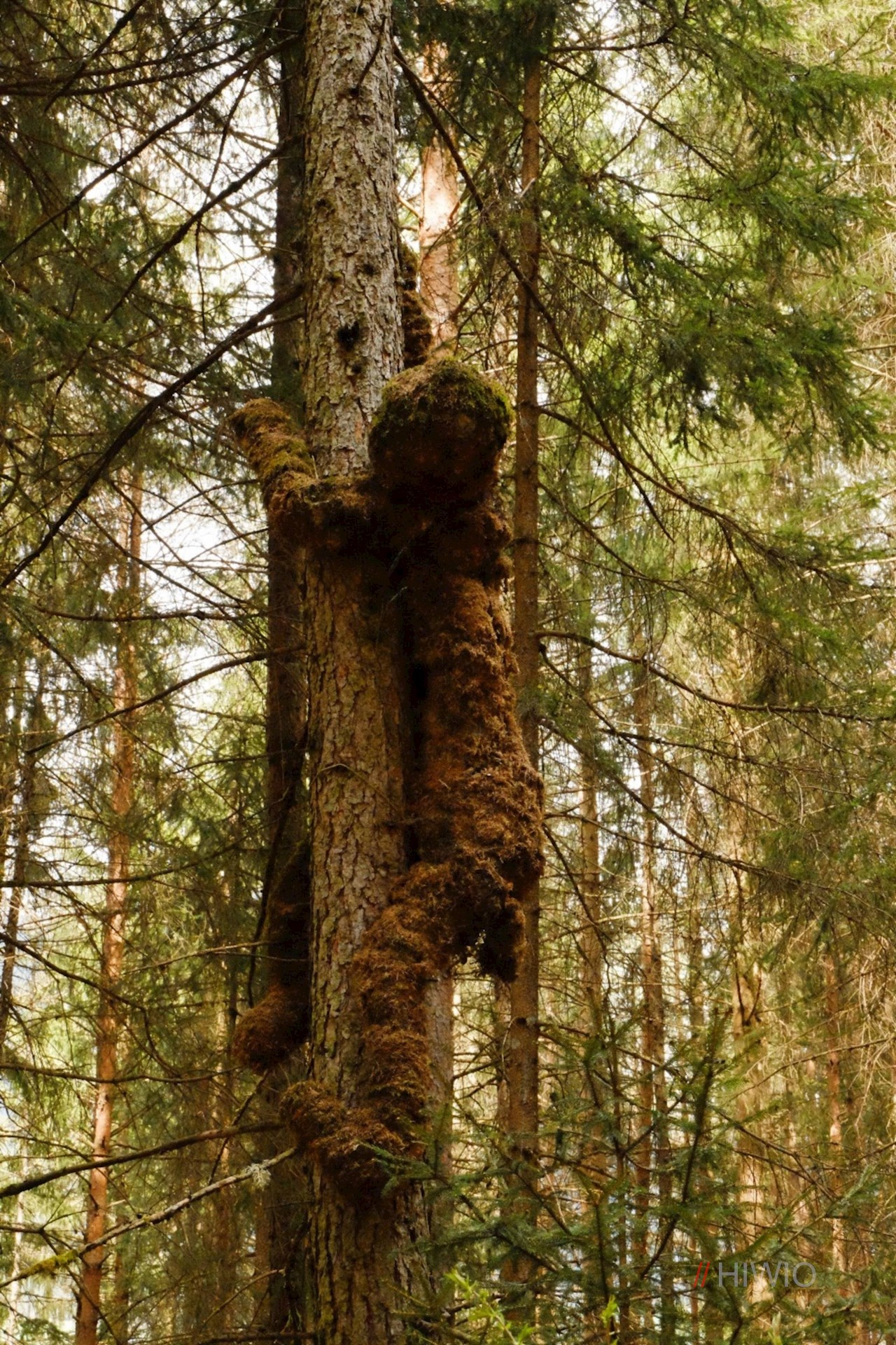 An der nächsten Weggabelung lohnt ein Abstecher auf den Weg Nr. 5, der von kunstvollen, aus natürlichen Materialien gefertigten Figuren und Skulpturen gesäumt wird. Es handelt sich um eine Teilstrecke des liebevoll angelegten LandArt-Weges, der nach dem Motto Kunst in und mit der Natur gestaltet wurde.