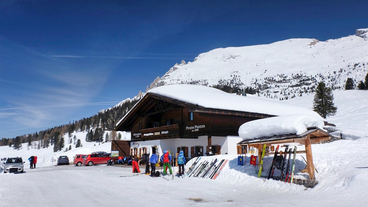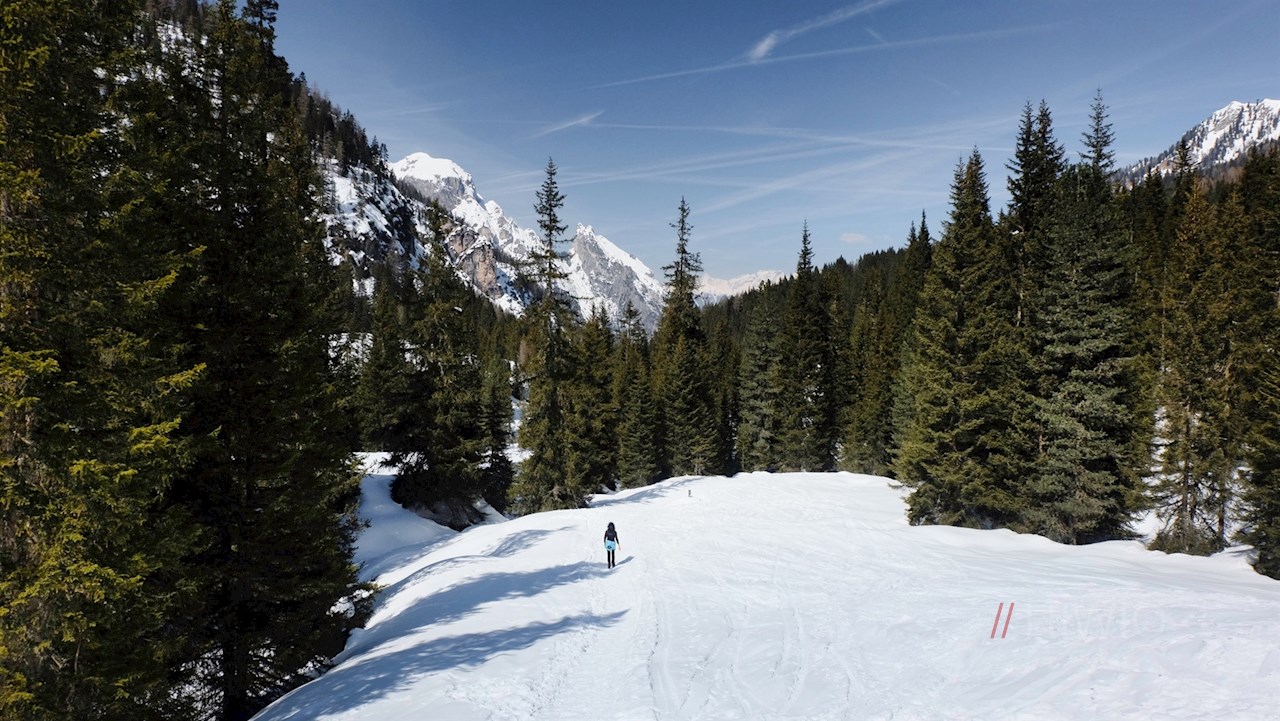 Die Winterwanderung auf die Plätzwiese beginnt auf dem gebührenpflichtigen Parkplatz vor dem Gasthaus Brückele im Altpragser Tal.
