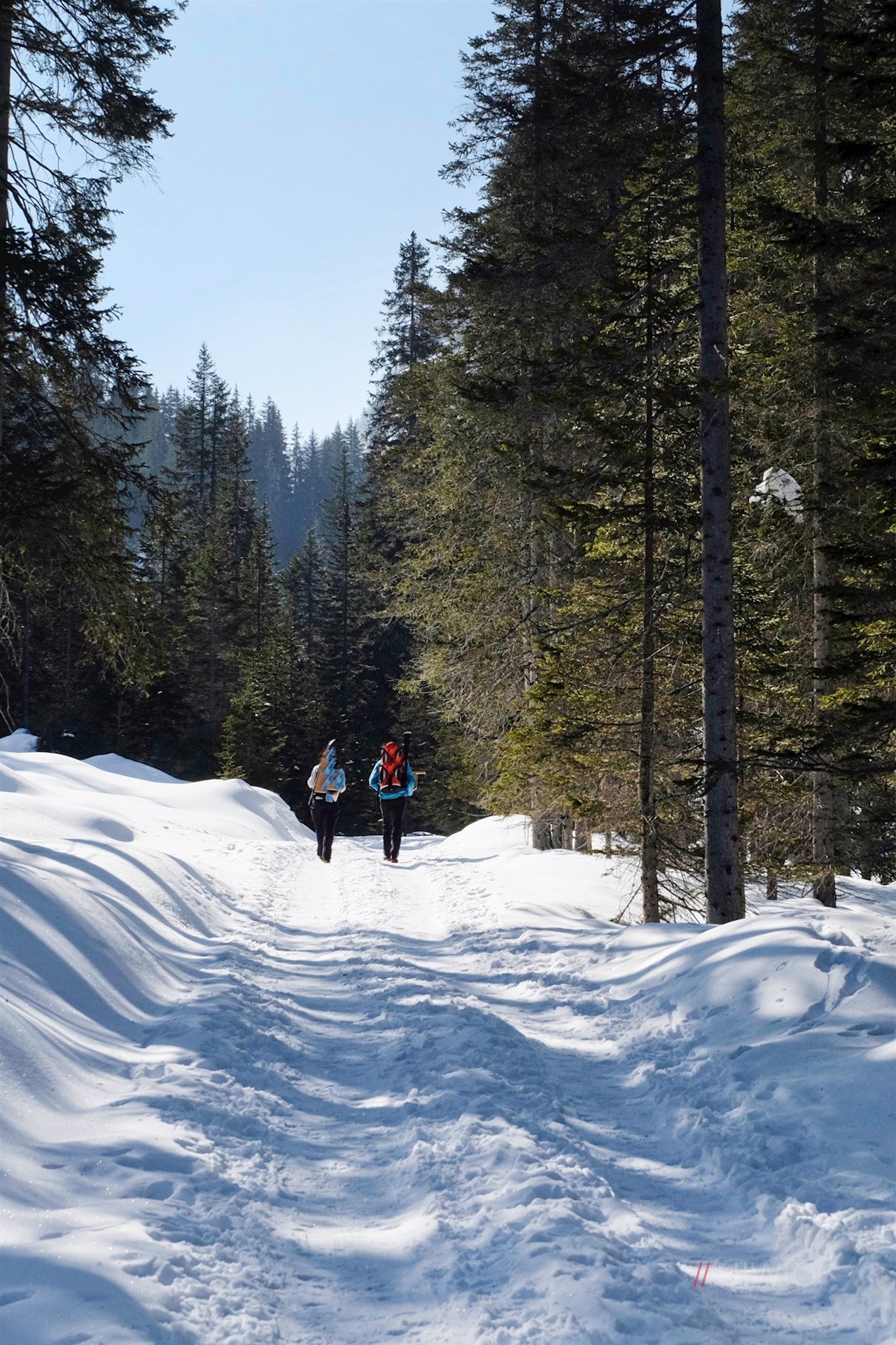 Der hier beschriebene Wanderweg ist zumeist so gut ausgetreten, dass man ihn auch ohne Schneeschuhe begehen kann. Bei Neuschnee sind aber oft Schneeschuhe erforderlich.