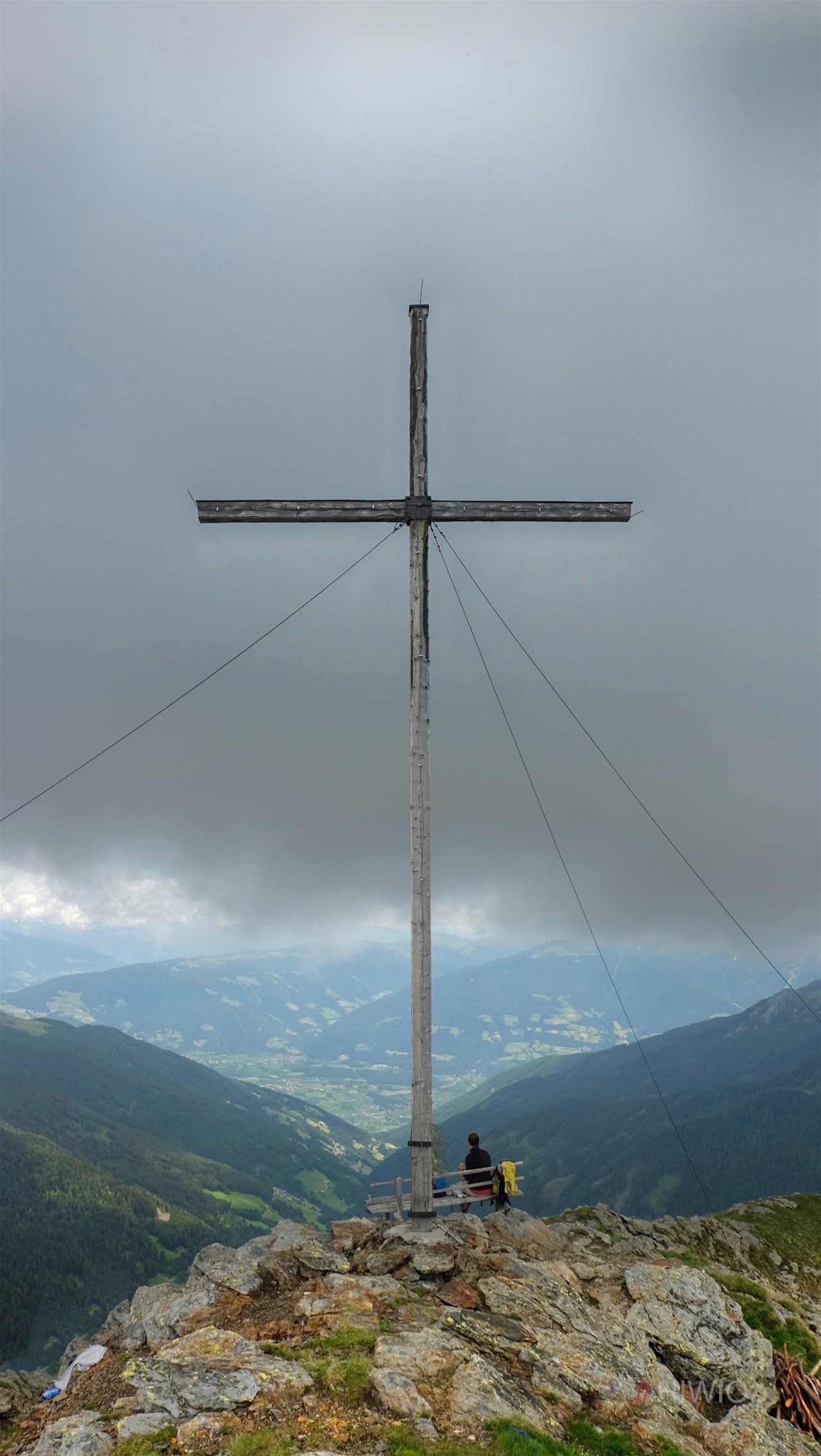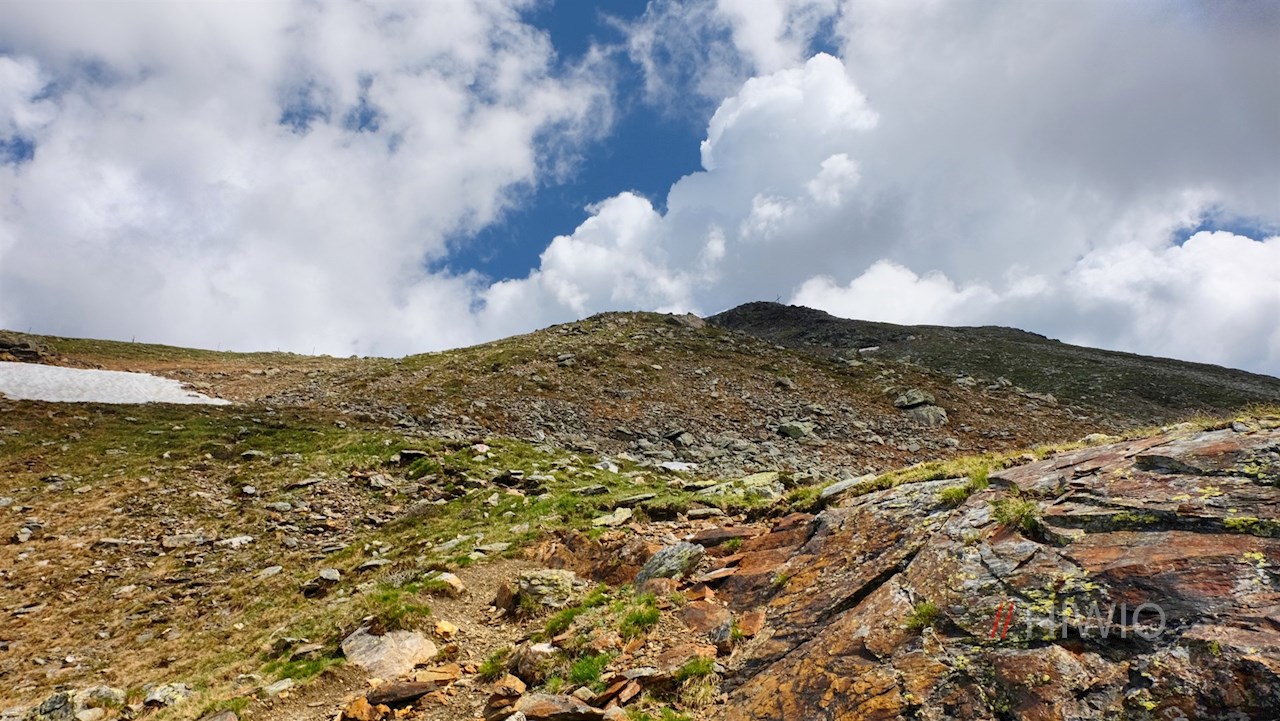 Weiterhin der Markierung Nr. 4 über den teils grasbewachsenen, teils geröllbeladenen Hang folgend, erreicht man nach einer weiteren halben Stunde das stattliche und zugleich schlichte Gipfelkreuz dieses aussichtsreichen Gipfels.