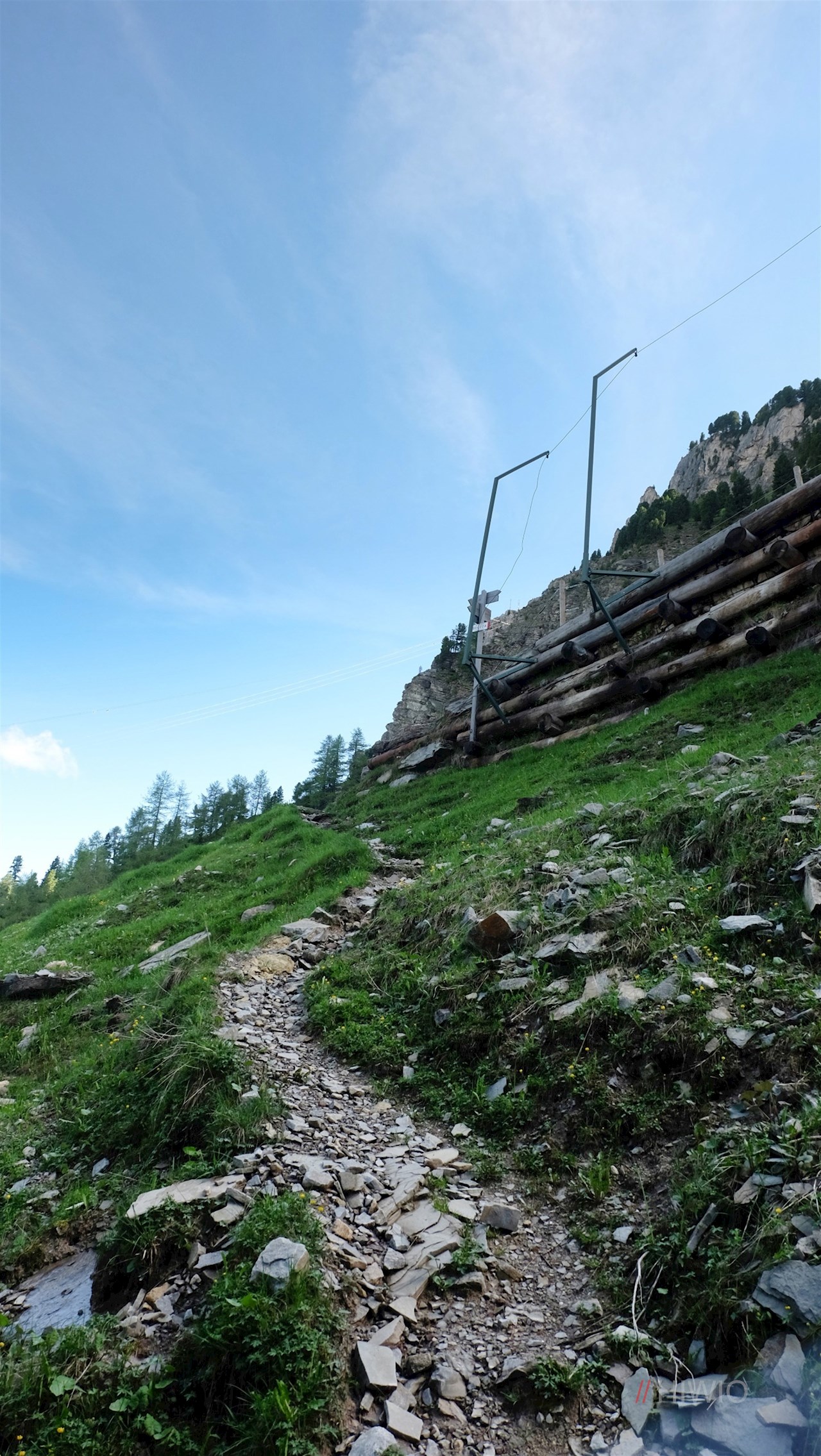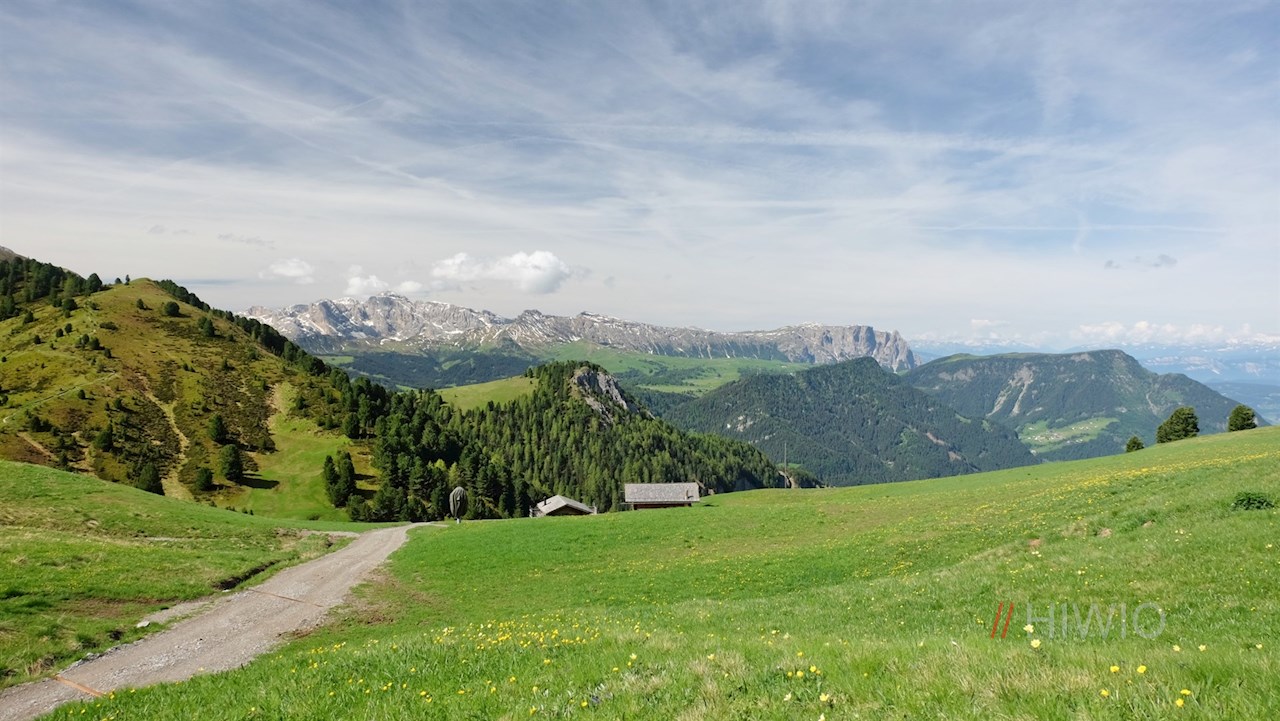 Nun beginnt der anstrengende Teil der Wanderung: Nach wie vor der Beschilderung Nr. 2 folgend, wandert man im nahezu beständig steilen Anstieg über die nunmehr verwaiste Abfahrtspiste und schließlich über einen schmalen, wurzelbeschlagenen Waldsteig die steilen Hänge empor. Knapp unterhalb der Waldgrenze gelangt man wiederum auf die Abfahrtspiste, auf der sich malerische Ausblicke auf St. Ulrich, den Schlern und die Raschötz auftun.