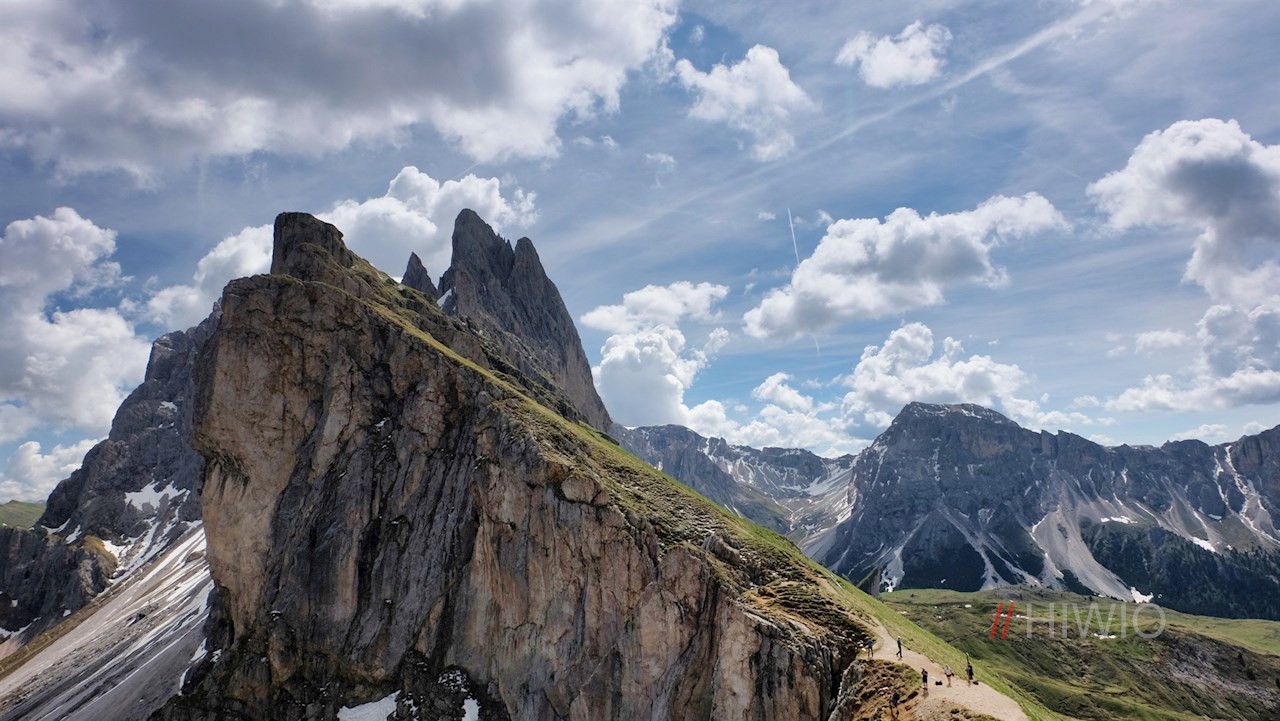 Nunmehr der Wegnummer 6 folgend, windet sich der Weg an der Curona-Hütte und der Sofie-Hütte vorbei durch die naturbelassenen, farbenfrohen Blumenwiesen auf die Seceda. Genießt man bereits während des Anstiegs atemberaubende Ausblicke, eröffnet sich auf dem Gipfel ein wahrlich unvergessliches Panorama: Insbesondere der Schlern, der Lang- und Plattkofel, der Monte Pic, der Sellastock und die nahen Geisler stechen ins Auge. Wer Letztere aus noch geringerer Entfernung bewundern und zugleich ins Villnösstal hinabblicken möchte, sollte noch den kurzen, nahezu eben verlaufenden Weg zur Pana-Scharte einschlagen.
