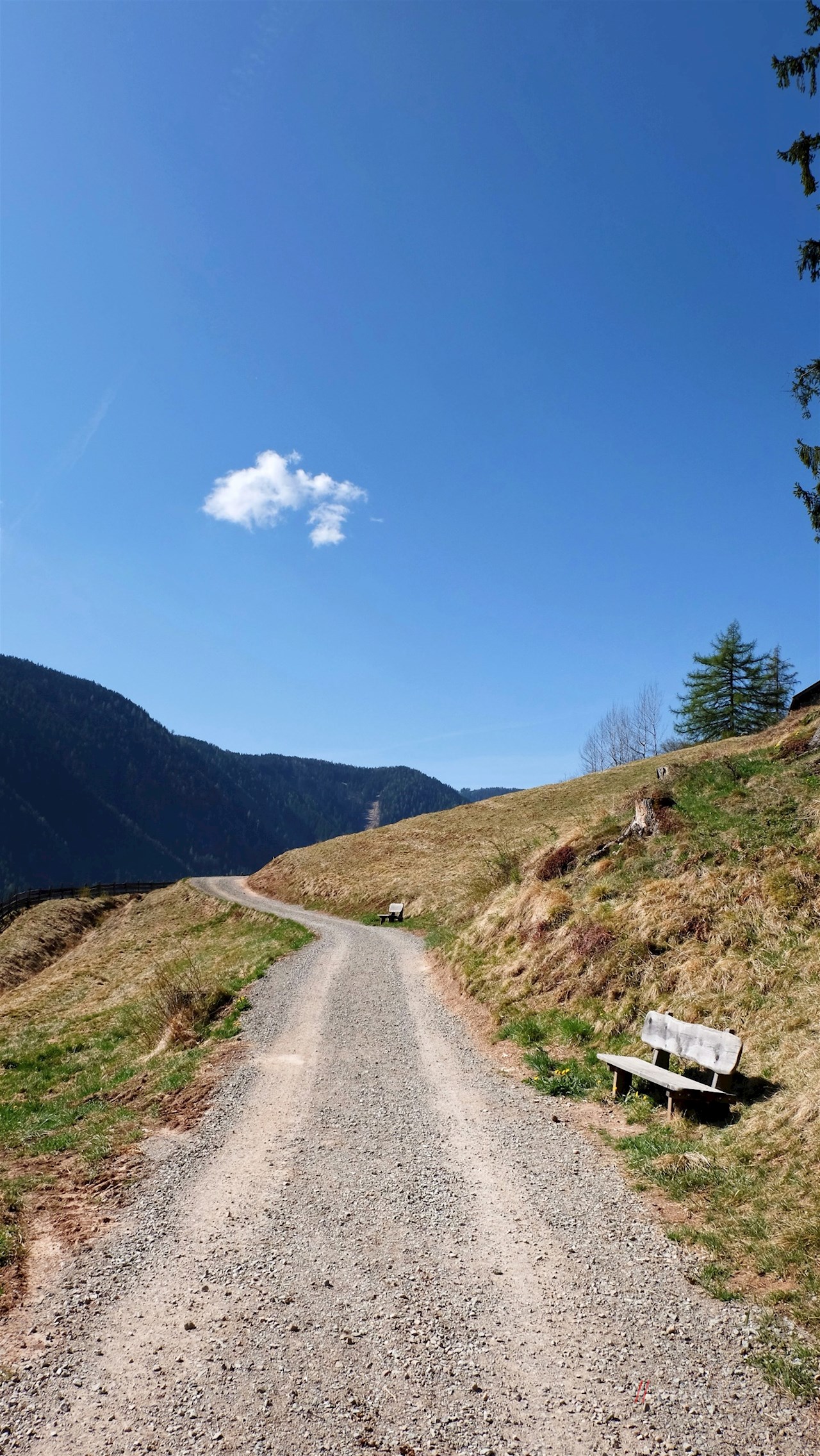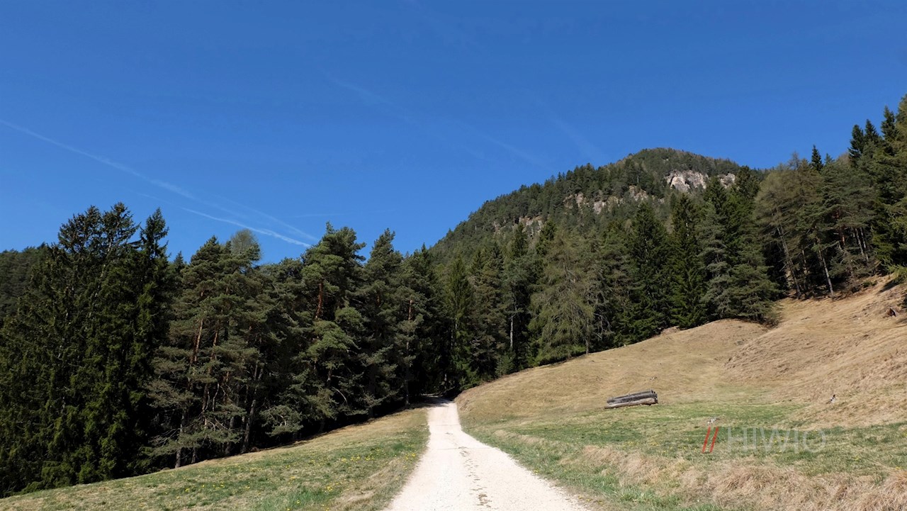 Der Wegnummer 4A in Richtung Tschafonhütte folgend, führt die Wanderung im anfangs gemächlichen Anstieg durch Wald und Wiesen.